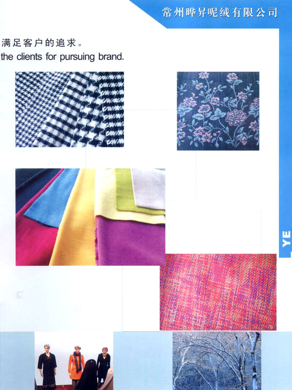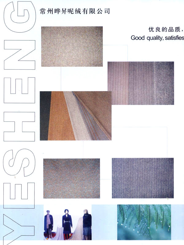 我廠成立于1999年,占地面積占60000平方米。固定資產(chǎn)有6000萬(wàn)元。年銷售額達(dá)到1億元,全廠職工有600余人,技術(shù)員工超過(guò)80人,我廠主要經(jīng)營(yíng)以粗毛紡為主的各式面料,以外銷為主,有一條完整的流水生產(chǎn)線,從原料一染色一紡紗一織造一后整理。我廠擁有12個(gè)染缸,日產(chǎn)量為6噸,精紡3600錠,粗紡8個(gè)臺(tái)套,劍桿織機(jī)60臺(tái),后整理有全套精粗紡加工設(shè)備。主要產(chǎn)品有:羊絨,粗花呢,免羊毛,雙面呢,法蘭絨,精紡花呢,維羅呢,阿爾巴卡等,以及各類格子花呢。近年來(lái)本企業(yè)利用地區(qū)優(yōu)勢(shì)勢(shì)力開(kāi)發(fā)新品,在原有的基礎(chǔ)上開(kāi)發(fā)出各種備受親睞的花式呢料。如格子花呢,緞染花呢,粗毛絨呢,提花呢,并于2000年通過(guò)ISO9002認(rèn)證。本廠產(chǎn)品主要銷往歐洲,日本,韓國(guó),法國(guó),加拿大,美國(guó),歡迎廣大客戶前來(lái)垂詢合作。本廠有志與世界的品牌建立良好的合作關(guān)系。