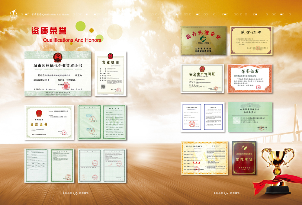 公司以園林綠化工程、市政公用工程、古建筑施工及景觀設(shè)計(jì)為主要業(yè)務(wù)的綜合性公司。并具備園林綠化一級、市政公用二級、鋼結(jié)構(gòu)三級、古建筑三級、房屋建筑工程施工總承包三級和城市及道路照明工程專業(yè)承包三級資質(zhì)企業(yè)。公司組織機(jī)構(gòu)健全、管理制度完善,具備獨(dú)特的經(jīng)營理念和服務(wù)精神。公司技術(shù)力量雄厚,機(jī)械設(shè)備齊全。公司已取得AAA級資信等級、重合同守信用企業(yè),通過ISO9001國際認(rèn)證體系并取得證書。目前我公司自主培育苗圃1000余畝,常年生產(chǎn)各種常綠、落葉喬木,花灌木、各類盆景、草坪、地被等植物百余種,年產(chǎn)各類苗木250萬株,盆花130萬盆,暢銷省內(nèi)外各地。