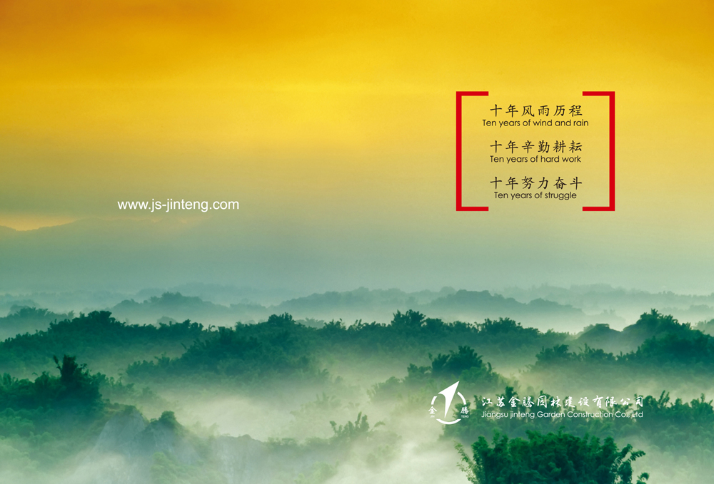 走過十年的風(fēng)雨歷程,經(jīng)過十年的辛勤耕耘,付出十年的努力奮斗,企業(yè)的規(guī)模不斷擴(kuò)大,公司堅(jiān)持以人為本,遵守“誠信、規(guī)范、團(tuán)結(jié)、奮斗”的宗旨。公司將用優(yōu)秀的品質(zhì)服務(wù)來回報(bào)關(guān)愛公司成長的社會各界人士。江蘇金騰園林建設(shè)有限公司愿攜手社會各界有識之士共創(chuàng)造美好的未來!