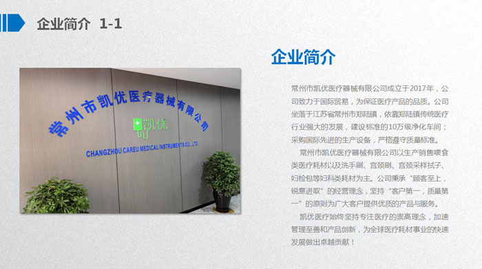 常州市凱優(yōu)醫(yī)療器械有限公司成立于2017年,是一家專(zhuān)注于研究、開(kāi)發(fā)、生產(chǎn)及銷(xiāo)售喂食類(lèi)醫(yī)療耗材、醫(yī)用泌尿類(lèi)耗材、婦科類(lèi)檢查器械、口罩等產(chǎn)品于一體的現(xiàn)代化企業(yè)。公司坐落于常州市天寧區(qū)鄭陸鎮(zhèn)一天寧高新區(qū)。我們的產(chǎn)品先后通過(guò)FDA、CE、ISO等認(rèn)證。 公司成立至今,始終秉承“顧客至上,銳意進(jìn)取”的經(jīng)營(yíng)理念,先后獲得守合同重信用企業(yè)、國(guó)家質(zhì)量服務(wù)信譽(yù)AAA級(jí)企業(yè)等榮譽(yù)。我們擁有經(jīng)驗(yàn)豐富的銷(xiāo)售團(tuán)隊(duì)、各類(lèi)專(zhuān)業(yè)的技術(shù)人才、熟練操作的員工以及數(shù)臺(tái)國(guó)內(nèi)外先進(jìn)的設(shè)備,敦力于為客戶(hù)提供最優(yōu)質(zhì)的服務(wù)和支持。我們以先進(jìn)的技術(shù)和科學(xué)的管理為依托,堅(jiān)持實(shí)施品牌戰(zhàn)略,在競(jìng)爭(zhēng)激烈的醫(yī)療器械行業(yè)內(nèi),我們注重追求自主設(shè)計(jì)研發(fā),己累計(jì)推出自主研發(fā)專(zhuān)利十五余項(xiàng)。公司成立短短幾年的時(shí)間已經(jīng)實(shí)現(xiàn)了跨越式發(fā)展,產(chǎn)品遠(yuǎn)銷(xiāo)東南亞、東歐、北美等地區(qū),贏得,國(guó)內(nèi)外客戶(hù)的一致贊譽(yù)。 長(zhǎng)風(fēng)破浪會(huì)有時(shí),直掛云帆濟(jì)滄海。凱優(yōu)醫(yī)療如同翱翔的雄鷹,迎著希望,展翅飛翔。面對(duì)新的機(jī)遇與挑戰(zhàn),凱優(yōu)人定會(huì)憑借工匠精神,持續(xù)改進(jìn)、不斷創(chuàng)新,為企業(yè)在激烈的市場(chǎng)競(jìng)爭(zhēng)中以質(zhì)取勝,確保行業(yè)領(lǐng)先地位,最終實(shí)現(xiàn),成為醫(yī)療耗材行業(yè)引領(lǐng)者的企業(yè)愿景。 凱優(yōu)醫(yī)療,因?yàn)閷?zhuān)注所以卓越。