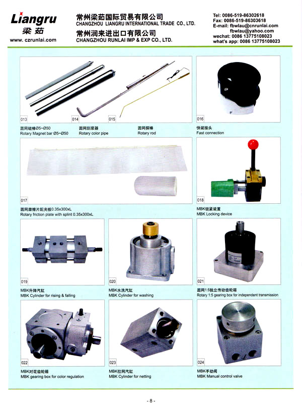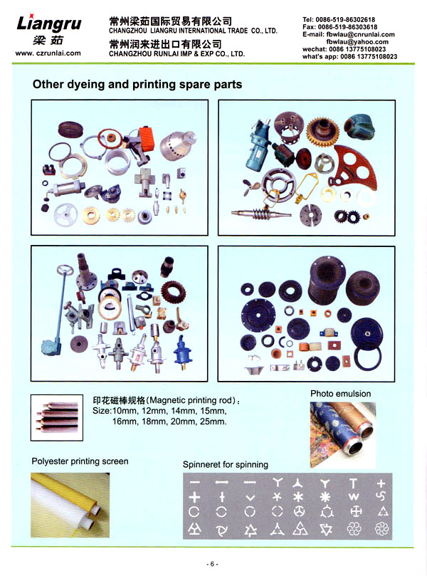 常州梁茹國(guó)際貿(mào)易有限公司是國(guó)內(nèi)外雙用鋏,T型刮漿片,感光膠, 640軸承,剝邊器,阿托斯滑塊,印花用漿泵,針板座, 印花用圓網(wǎng),印花圓筒網(wǎng),華磁棒,針板,毛刷輪,定型機(jī)鏈條, 切布刀片的主要供應(yīng)商 。我們公司位于常州市,臨近上海,交通十分便利。