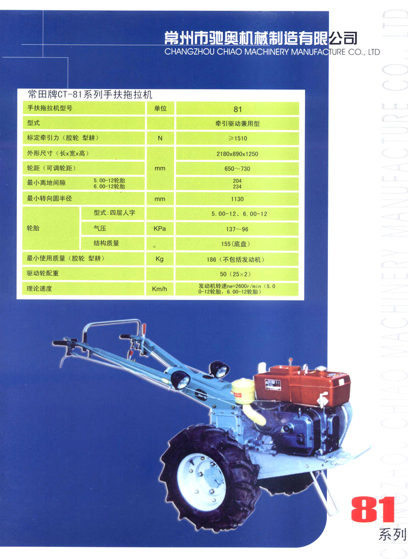 常州市馳奧機(jī)械制造有限公司是生產(chǎn)手扶拖拉機(jī)的專業(yè)生產(chǎn)企業(yè),公司位于風(fēng)景秀麗、人文薈萃的江蘇省常州市,緊鄰滬寧、寧常高速以及312國(guó)道,交通極為便利。公司擁有先進(jìn)的手扶拖拉機(jī)生產(chǎn)線,主要生產(chǎn)81/91,121/151型手扶拖拉機(jī),產(chǎn)品均為國(guó)家農(nóng)機(jī)購置補(bǔ)貼產(chǎn)品。 公司堅(jiān)持以科技興企業(yè),在提高產(chǎn)品技術(shù)含量的同時(shí),加強(qiáng)產(chǎn)品質(zhì)量、售后服務(wù)方面的監(jiān)督與管理,根據(jù)市場(chǎng)需求提升改進(jìn)和研發(fā)新產(chǎn)品,使公司產(chǎn)品得到了市場(chǎng)的認(rèn)可,贏得了廣大農(nóng)民用戶的一致好評(píng)。 公司將本著“誠(chéng)信經(jīng)營(yíng)、質(zhì)量第一、客戶至上”的經(jīng)營(yíng)理念,立足現(xiàn)在、著眼未來,以打造常州一流的農(nóng)機(jī)品牌為目標(biāo),在提升產(chǎn)品技術(shù)、保障產(chǎn)品質(zhì)量的同時(shí),不斷研發(fā)新產(chǎn)品,最大程度的滿足用戶需求,為我國(guó)農(nóng)業(yè)機(jī)械現(xiàn)代化發(fā)展做出應(yīng)有的貢獻(xiàn)!