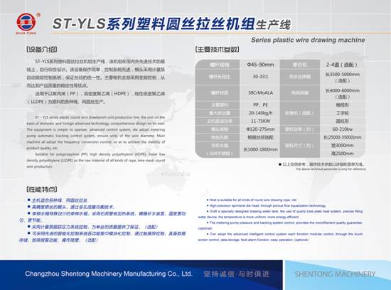 常州神通機械制造有限公司位于滆湖之盼,依托常州市武進區(qū)優(yōu)越的地理環(huán)境,公司創(chuàng)建于1992年,是專業(yè)生產塑料機械拉絲機成套設備的企業(yè)。 神通公司經過30年多來的艱辛創(chuàng)業(yè),在塑料機械行業(yè)中積累了豐富的經驗,為擴大生產能力,提升產品質量,新組建了一個技術緊密合作型企業(yè),并具有獨立法人資質,即為宜興順通機械制造有限公司。我們會一如既往地努力,堅持走“順通”的品牌之路,愿與各位同行攜手共創(chuàng)未來,為塑料機械行業(yè)的發(fā)展作出貢獻。 神通公司擁有標準廠房共計15000m²,現有先進的三軸、四軸聯(lián)動的加工中心,數控鉆床、銑床、車床、外圓磨床、剪板機、折彎機等高精度加工設備。 神通公司以精湛的生產工藝、完善的管理體系和滿意的售后服務,得到新老用戶的信賴。設備外形美觀、結構合理、性能安全可靠、具有先進的控制系統(tǒng)等優(yōu)點,物美價優(yōu),得到新老用戶的一致好評。 神通公司對產品質量要求是:從原材料采購到成品出廠,均執(zhí)行品質控制。 神通公司堅持“以人為本、誠信經營、科技興業(yè)、精益求精、以質取勝、合作共贏”的經營理念!耙再|量求生存,以創(chuàng)新求發(fā)展”的企業(yè)精神。 主營業(yè)務: 1.雙色人造草坪單絲、雙色人造草坪曲絲一步法、人造草坪開網絲拉絲成套生產線設備系列,及草坪絲一步法捆綁收卷機、一步法捻線機、絡筒機。 2.PE、 PP、 PA、PET圓絲、工業(yè)單絲等拉絲成套生產線設備系列。 3.集裝袋、編織袋、土工布、PP基布、遮陽網、捆草網、蓋土網等平膜扁絲拉絲機成套生產線設備系列。 4.電纜填充網狀絲、PP縱向拉伸膜、PE壓花膜成套生產線設備系列,及各種特殊規(guī)格的電纜填充繩收卷機等電纜材料輔助設備5.高低壓PP,PE吹膜機及撕裂膜、捆扎帶生產線設備系列。 6.塑料回收造粒機組、邊絲回收裝置及粉碎機等。 7.圈、扁絲磁性收卷機、變頻無刷電機收卷機,圓絲工字盤、橄欖形、寶塔形收卷機及浸膠線專用收卷機。 8.舊塑料拉絲機設備改造、可定做特殊規(guī)格的圓、扁絲帶捻度專用收卷機、繩網絡筒機及其它收卷機。