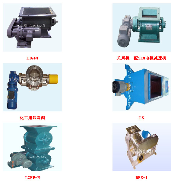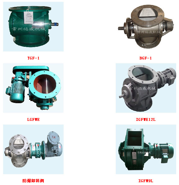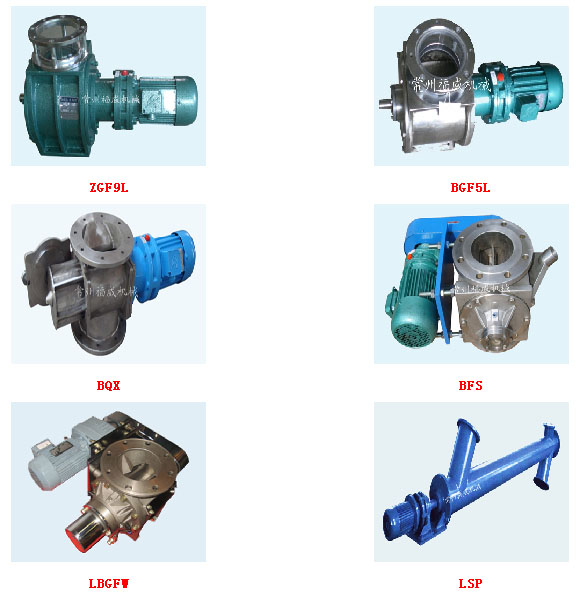 公司生產的關風機、旋轉閥、星型裝卸料裝置、螺旋輸送機,共有TGF、ZGF、ZGFW、ZGFWE、ZGFWF等十多種機型,五十多種規(guī)格,百余種參數,制造材質有鑄鐵、碳鋼、不銹鋼等,可滿足不同介質、不同工況的要求。產品廣泛應用于糧油、食品、飼料、化工、制藥、干燥、除塵等行業(yè)。