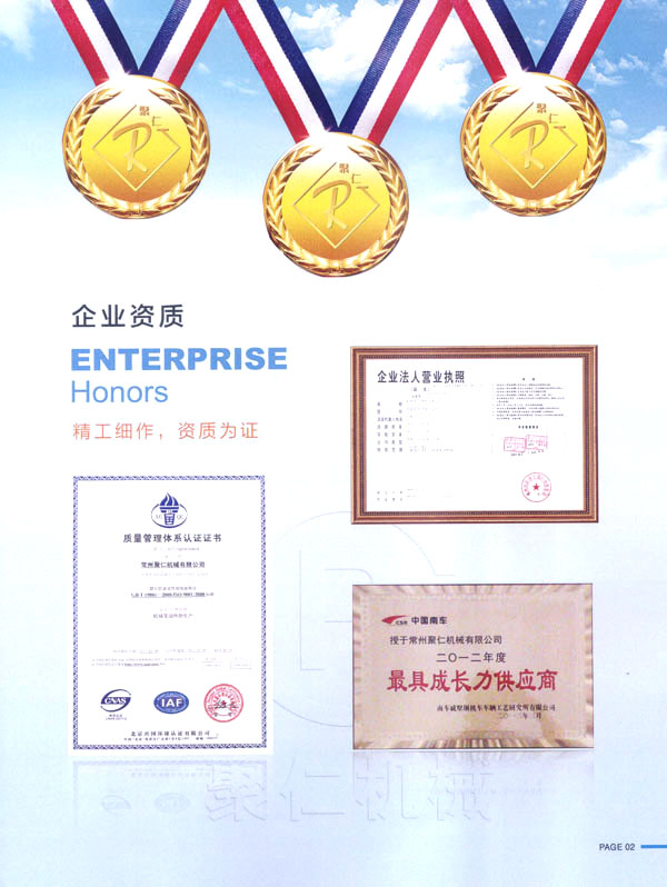 聚仁公司位于常州市南郊牛塘鎮(zhèn),盧西工業(yè)園區(qū)一號路15號,東鄰常州市淹城風景旅游區(qū),西鄰隔湖開發(fā)區(qū),南北方向通高架、有高速出入口,環(huán)境優(yōu)美,交通便捷。公司發(fā)展至今已有十多年歷史,從開辦以來一直從事機械加工制造。與南京造幣有限公司業(yè)務合作至今,為其制造加工印刷機的零、部件,深受用戶的信任。去年又與南車集團戚墅堰機車車輛研究所合作,加工CRH2型新一代高速動車組驅(qū)動裝置380BC類零件等。