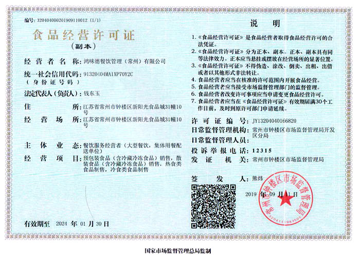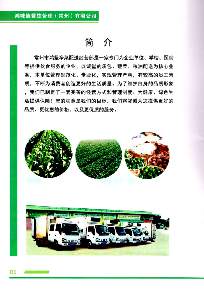 鴻味德餐飲管理(常州)有限公司是一家專門為企業(yè)單位、學(xué)校、醫(yī)院等提供伙食服務(wù)的企業(yè),以飯?zhí)玫某邪、蔬菜、糧油配送為核心業(yè)務(wù),本單位管理規(guī)范化、專業(yè)化,實(shí)現(xiàn)管理嚴(yán)明,有較高的員工素質(zhì),不斷為消費(fèi)者創(chuàng)造更好的生活質(zhì)量。為了維護(hù)自身的品質(zhì)形象,我們已制定了一套完善的經(jīng)營方式和管理制度:為健康、綠色生活提供保障!您的滿意是我們的目標(biāo),我們將竭誠為您提供更好的品質(zhì)、更優(yōu)惠的價(jià)格、以及更優(yōu)質(zhì)的服務(wù)。
