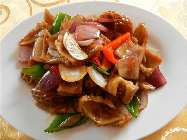 談家的羊肉館位于鄭陸老街上,深秋的一天,記者來到這家羊肉館,穿過大堂走到廚房里,幾名工人正在忙著處理羊肉。余菊華穿著大紅色的薄毛衣,坐在桌子旁,正在麻利地剔著羊肉上的肥油。她是羊肉館的老一代老板娘,如今和老伴談仲興一起,仍天天來店里幫著兒子談旭東打下手。余阿姨隨手拿過一塊長(zhǎng)方形的肉皮,用一把小刮刀撳在上面,輕輕地刮著,一團(tuán)團(tuán)白白的油被剔了下來,堆在一邊。“我家的羊肉弄得干凈的,腿上的肥肉還有筋筋拉拉的東西,全都要弄掉,就是自己家買了豬肉燒紅燒肉,也不可能弄到這么干凈的,F(xiàn)在的客人都怕胖,所以一定要處理得干干凈凈!庇喟⒁陶f。剔好的肉皮是用來熬成皮凍然后混和著羊肉壓制成羊糕的,只有清理得干凈,沒有一點(diǎn)雜質(zhì),羊糕的質(zhì)量才會(huì)好。