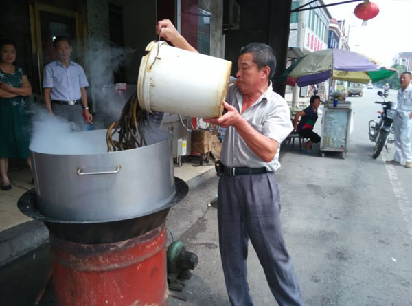 常州新北區(qū)孟河公陽小吃店從事鱔絲面23年,經(jīng)營面積100平方米,黃鱔全是野生,面湯采用高湯制作(鱔魚湯),下面的時(shí)候先用開水把黃鱔燙熟,然后用竹刀批下二條黃鱔肉,除去骨頭肚腸,切成段后入油鍋里炸酥,再用白湯烹制成為面澆頭。而面湯是用鱔魚骨頭、豬骨等用大鍋猛火煮上三、四個(gè)鐘頭,成為一鍋濃濃的白湯,再進(jìn)行調(diào)味,吃到嘴里全身舒坦。