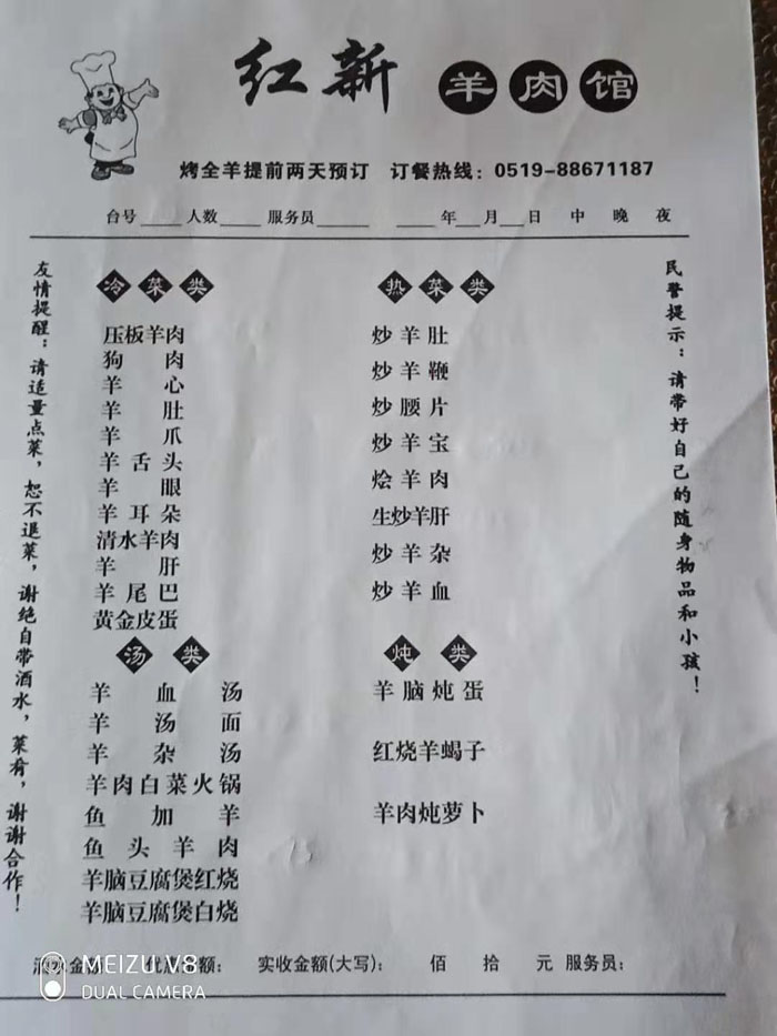 武進(jìn)區(qū)鄭陸寧河全羊館從事羊肉經(jīng)營(yíng)四十年,羊館經(jīng)營(yíng)面積300平方米,從羊頭到羊蹄都能做菜:羊頭、羊排、羊拐、羊蹄、羊耳,其他還有羊羔,烤羊,羊湯面,清水羊肉,全羊宴。羊肉湯只是白煮,湯白而濃稠,肉爛味鮮,還不腥不油不膩。你若細(xì)看菜單就能發(fā)現(xiàn),全羊席幾乎都是拿燉湯帶出來(lái)的,這更加顯示出羊肉湯的魅力。 我們結(jié)合現(xiàn)代人飲食文化的特點(diǎn),以考究的投料,精細(xì)的制作工藝,調(diào)出的全羊湯,湯汁乳白、鮮而不膳、香醇不膩、味道鮮美,具有補(bǔ)虛壯陽(yáng)、溫中暖下之功效。