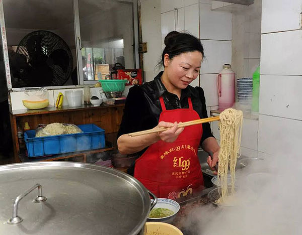 遙觀(guān)娟娟面館:青菜香菇雞蛋面 2016年歲末年初,武進(jìn)區(qū)商務(wù)局、武進(jìn)烹飪協(xié)會(huì)、《武進(jìn)日?qǐng)?bào)》等單位,在全區(qū)范圍內(nèi)開(kāi)展“武進(jìn)招牌面”評(píng)選活動(dòng),最終,遙觀(guān)娟娟面館被評(píng)定為“武進(jìn)招牌面”第一名。 2008年,馬玉娟所在的企業(yè)面臨倒閉,她開(kāi)始謀求自己的創(chuàng)業(yè)之路。第一個(gè)想法就是開(kāi)一家面館,因?yàn)槊妹民R小娟喜歡燒菜,親戚朋友吃了她燒的菜,無(wú)不嘖嘖稱(chēng)贊。姐妹倆一合作,店名自然叫“娟娟面館”。 開(kāi)面館,一面裝修,一面領(lǐng)“衛(wèi)生許可證”、“工商營(yíng)業(yè)執(zhí)照”;再就是外出求藝學(xué)燒菜。姐妹倆兵分兩路:玉娟去學(xué)小炒,小娟去學(xué)大葷澆頭,不久便開(kāi)張營(yíng)業(yè)了。 行家吃面先品湯。娟娟面館的白湯是最樸實(shí)的燒法,它用大肉、排骨熬制4個(gè)小時(shí),湯色清亮,香氣撲鼻。至于拌面湯,全部都是紅燒肉汁,加上香蔥、雞精等十多種調(diào)料,自然是色香味俱佳。 娟娟面館點(diǎn)單率最高的是青菜香菇雞蛋面,一菜一菇一蛋一湯,樸實(shí)無(wú)華,價(jià)廉物美,老少皆宜,久吃不厭,非常適宜我國(guó)人口的營(yíng)養(yǎng)膳食結(jié)構(gòu)。其中小青菜是當(dāng)?shù)剞r(nóng)家的家常菜;雞蛋是當(dāng)?shù)毓麍@散養(yǎng)的母雞所生,味道自然地道純正了。 娟娟面館自開(kāi)張以來(lái),幾乎天天顧客盈門(mén),高峰時(shí)要在門(mén)外等候。如今姐姐的兒子和妹妹的女兒都已上陣傳承,并在湖塘鎮(zhèn)馬杭紡織城附近新開(kāi)了一家連鎖面館,每天要賣(mài)出300-500碗各式面點(diǎn)。