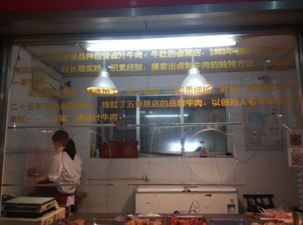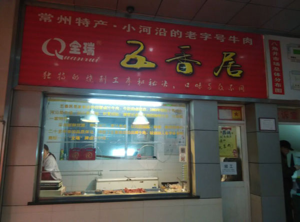 天寧區(qū)五香居牛肉店經營鹵汁牛肉、牛肚的鹵菜店,1983年創(chuàng)始于常州小河沿菜市場,經長期實踐,積累經營、摸索出鹵汁牛肉的獨特方法,已自成一家特色。 采用新鮮貨源,精選加工、原汁原味,以肉質細膩、鮮嫩,口味獨特成為二十多年來品質的保證,鑄就了五香居店的品牌牛肉,以,創(chuàng)始人名字命名的商標——“全瑞”牌鹵汁牛肉。
