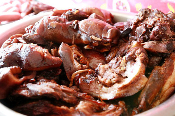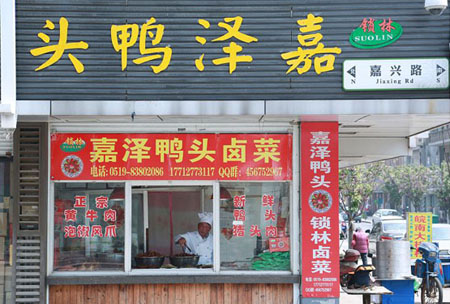 武進(jìn)區(qū)嘉澤老街十字路口,有一家不起眼的鹵菜專賣店,店面雖然不大,但一年365天每天來購買鹵菜的消費(fèi)者卻絡(luò)繹不絕。 這家鹵菜店名叫鎖林鹵菜店,店主名叫萬鎖林。 今年已花甲之年的萬鎖林,出生在武進(jìn)區(qū)的一個(gè)鹵菜世家。解放前,正逢亂世,1927年其父萬友良17歲隨父從蘇北海安至夏溪鎮(zhèn)落戶,全家以經(jīng)營小吃、鹵菜為生。1956年萬友良經(jīng)營的鹵菜小吃店公私合營,起名為東方飯店(后改名為夏溪飯店),萬友良帶領(lǐng)其七個(gè)兒子全部從事餐飲事業(yè)。1972年,排行第六的萬鎖林初中畢業(yè)被分配到嘉澤飯店工作,直至1982年夫妻倆著手創(chuàng)辦鎖林鹵菜館,專業(yè)從事鹵菜的加工和銷售。 鎖林鹵菜采用祖?zhèn)髋浞,制作工藝?jīng)清洗—汆水—再清洗—油汆—加料—燒制—包裝等多道工序。萬鎖林在祖?zhèn)髅胤降幕A(chǔ)上,不斷探索創(chuàng)新,使鹵菜口味更加香醇可口。他還在菜肴中加入茴香、陳皮、桂皮等20多種中草藥,使產(chǎn)品兼具食用保健作用。 由于鎖林鹵菜色、香、味俱佳,而且價(jià)格合理,遠(yuǎn)近數(shù)十里群眾紛紛前來選購目前,該店已形成鴨頭、雞爪、豬頭肉、五香牛肉等四大系列,產(chǎn)品遠(yuǎn)銷北京、上海、浙江、海南及蘇、錫、常各地,深受各地消費(fèi)者青睞。 購買地址: 一、嘉澤鎮(zhèn)菜市場(chǎng)內(nèi) 二、嘉澤鎮(zhèn)老街十字路口 電話:0519-83802086 訂購熱線:18915002160