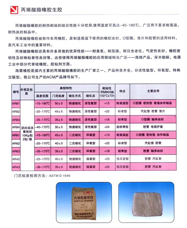 常州海霸橡膠有限公司成立于2005年,位于常州與江陰接壤處的武進(jìn)區(qū)橫山橋鎮(zhèn),西距常州18公里。北距江阻20公里,滬寧高速公公司占地面積30865平方米,其中建筑面積9800平方米,廠區(qū)環(huán)境優(yōu)雅,有山有水,綠化率達(dá)到1 00%,是一座名符其實(shí)的江南花園式工廠。 公司堅(jiān)持“信譽(yù)打天下,質(zhì)量占市場(chǎng)”的企業(yè)運(yùn)營(yíng)理念,建立,健全現(xiàn)代企業(yè)管理制度,珍視用戶,用“心”為國(guó)內(nèi)外客商服務(wù)。全方位整合多種資源,使企業(yè)步入快速發(fā)展的軌道,打造出一流的化工企業(yè)。 公司生產(chǎn)的聚丙烯酸酯系列橡膠,以及丙烯酸酯橡膠混煉膠、乙烯丙烯酸酯橡膠混煉膠、氟橡膠膠混煉膠、氟硅橡膠混煉膠、氫化丁腈混煉膠等。質(zhì)優(yōu)物美,深得國(guó)內(nèi)外客商的青睞。 展望未來(lái)。海霸人將繼續(xù)以?shī)^斗不息的精神和百倍信心與廣大客戶一起共創(chuàng)美好明天。