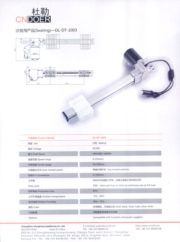 常州登豐電氣有限公司位于人杰地靈的江南古城—常州武進(jìn)區(qū)鄭陸鎮(zhèn)東青。緊臨常州火車站、滬寧高速公路、312國(guó)道、長(zhǎng)江港等,交通十分便捷。 公司最早創(chuàng)辦于1989年,歷經(jīng)20多年的艱苦創(chuàng)業(yè),本著“誠(chéng)信為本、品質(zhì)至上”的經(jīng)營(yíng)理念,公司生產(chǎn)的“武微”牌空調(diào)電機(jī)、“蘇杰”牌電動(dòng)車電機(jī)和采用國(guó)外先進(jìn)技術(shù)制作的動(dòng)力強(qiáng)勁、同時(shí)具有過(guò)載保護(hù)和消音裝置的綠色環(huán)保產(chǎn)品:“登豐”、“聚美”牌食物垃圾處理器。這些產(chǎn)品在全國(guó)各地市場(chǎng)均享有較高的知名度。 如今,公司為謀求新的發(fā)展,立足于國(guó)內(nèi),放眼于國(guó)際市場(chǎng),投入了大量的人力、財(cái)力、物力,購(gòu)置了先進(jìn)的全自動(dòng)生產(chǎn)流水線、全自動(dòng)繞線機(jī)和各類精密的測(cè)試儀器,多功能隔音房等設(shè)施,全新推出了具有美好前景和廣闊市場(chǎng)的主打產(chǎn)品:“杜勒”牌系列線性推桿及各類配套電機(jī)。該產(chǎn)品已通過(guò)ISO9001認(rèn)證,產(chǎn)品外觀新穎、制作精良、噪音小、操作靈活簡(jiǎn)便,暢銷國(guó)內(nèi),遠(yuǎn)銷國(guó)外,被廣泛應(yīng)用于電動(dòng)沙發(fā)、醫(yī)療護(hù)理床、手術(shù)床、按摩椅等眾多領(lǐng)域!岸爬铡碑a(chǎn)品已被越來(lái)越多的客戶所青睞和認(rèn)可! 公司竭誠(chéng)歡迎各界朋友、新老客戶前來(lái)洽談合作,共謀發(fā)展。我們也將不斷開拓創(chuàng)新,提高產(chǎn)品質(zhì)量,完善售后服務(wù)體系,努力打造成為行業(yè)先鋒企業(yè)!