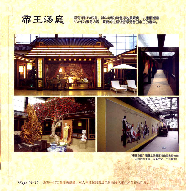 淹城花都溫泉水城孕育天地之精華,悅身、悅?cè)、悅心、悅神。置身其中泉水潺潺,霧氣繚繞、花瓣飄香,恍若仙境。“掬水月在手,弄花香滿衣”,花都溫泉的浪漫與溫潤在這里完美展現(xiàn)。 花都溫泉水城包括洗浴區(qū)、戲水世界、露天溫泉、自助餐廳、生態(tài)房、別墅區(qū)、紅文化房、VIP區(qū)等多種功能區(qū)域,是集溫泉養(yǎng)生、休閑住宿、演藝會務(wù)為—體的休閑度假勝地,給賓客帶來江南小鎮(zhèn)的浪漫水城之旅。 古木新枝畔賓客對酒當(dāng)歌,溪泉石椅旁把茶品啜。 淹城-三勤生態(tài)酒店,這里是一處綠色生態(tài)的美食家園。此地鬼斧神工.奇水異石,和風(fēng)細雨林中穿過,引百鳥朝來暮歌;這里集生態(tài)餐飲、演藝、中小型會務(wù)為一體,將現(xiàn)代裝飾風(fēng)格和古雅拙樸的自然裝修完美整合;這里聚集大江南北名廚,推出精致綠色美昧佳肴。來到這里,賓客可享田園至美之景,品舌尖至鮮之味,實乃人生一大樂事。