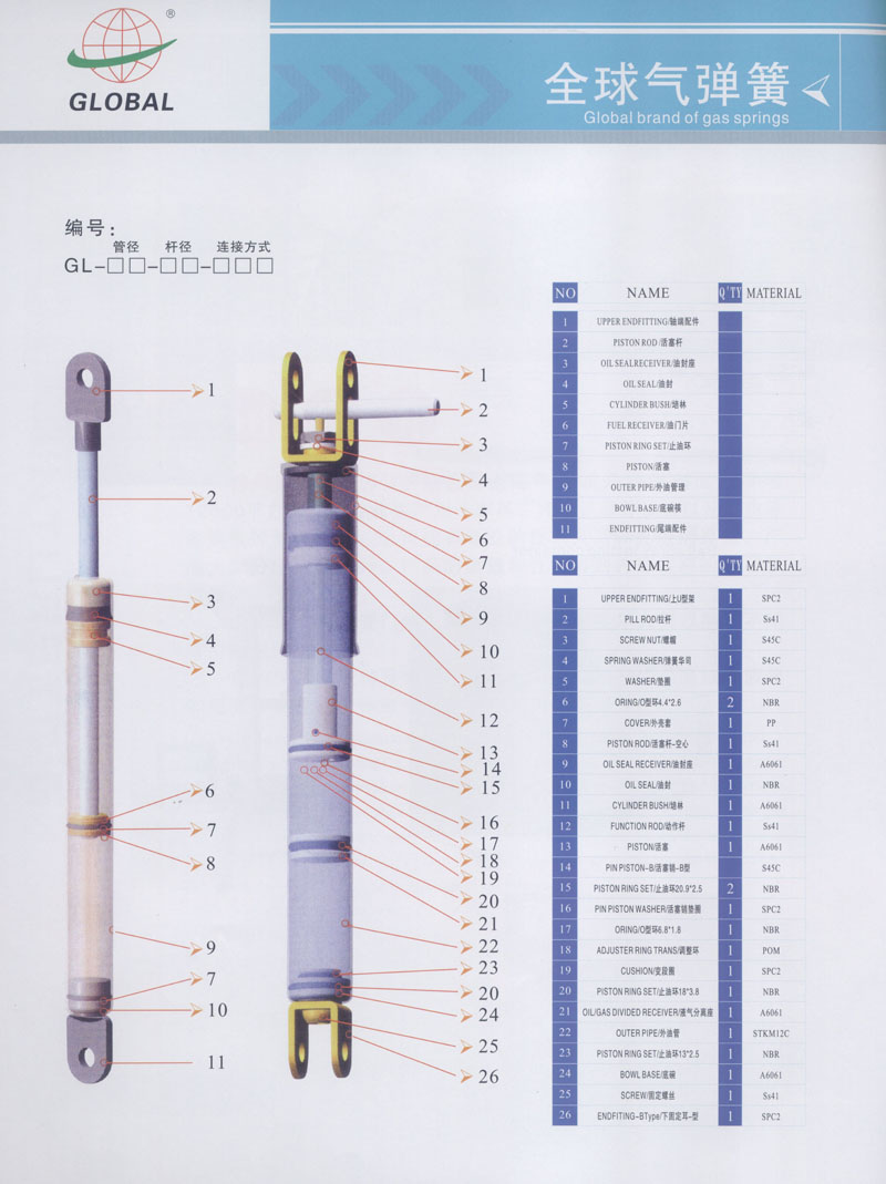 常州市全球氣彈簧有限公司坐落于高新開發(fā)區(qū)南區(qū),占地12800平方米,是專業(yè)生產(chǎn)用于家具,汽車,醫(yī)療設(shè)施以及工業(yè)等各類氣彈簧的廠家。公司擁有專業(yè)的技術(shù)人員和先進(jìn)的設(shè)備,產(chǎn)品大部分出口到國外,產(chǎn)品的質(zhì)量和性能得到內(nèi)外客戶的認(rèn)可和歡迎。