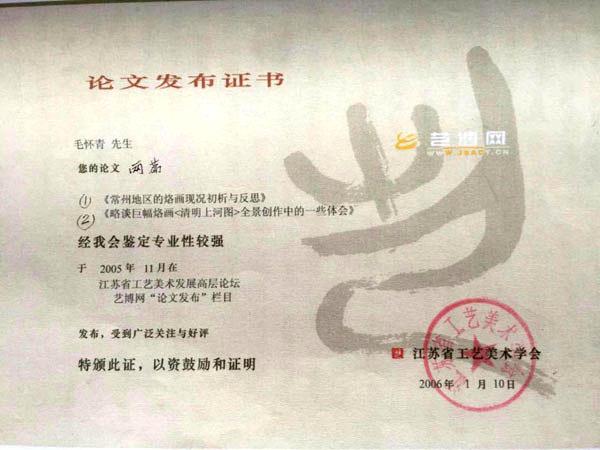 近年來(lái),創(chuàng)作的烙畫作品分別獲得過(guò)全國(guó)、省市級(jí)的金、銀、銅獎(jiǎng)多次。中央電視臺(tái)曾兩次播放過(guò)本人的烙畫作品,江蘇電視臺(tái)、常州電視臺(tái)也曾多次播放過(guò)本人的作品與烙畫藝術(shù)生涯,揚(yáng)子晚報(bào)、常州日?qǐng)?bào)、常州晚報(bào)也曾多次報(bào)導(dǎo)過(guò)本人的烙畫作品,出版物有三種版本都能查閱到介紹本的烙畫從藝生涯與藝術(shù)業(yè)績(jī)。