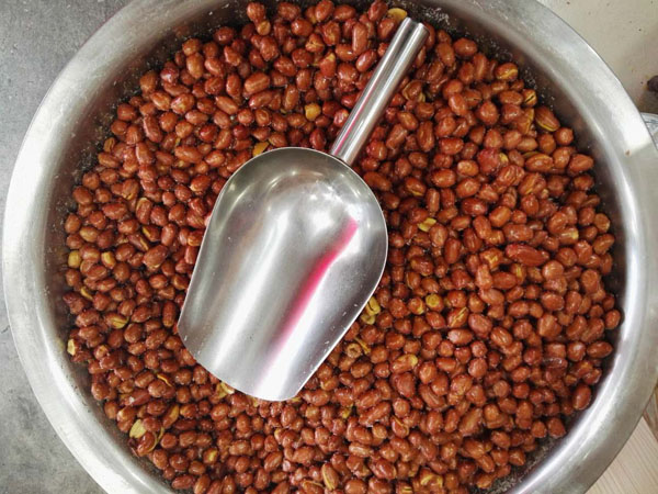 湖塘花東街上的“石頭炒貨店”是20多年的老字號(hào)了。上個(gè)世紀(jì)90年代,二十郎當(dāng)歲的“石頭”一一石愛軍從徐州來(lái)到武進(jìn),就在這條街上擺了個(gè)炒貨攤。“幾平方米的小地?cái),邊上架個(gè)大鐵鍋,炒出的瓜子、花生、蠶豆,鋪在竹篾上篩過(guò)、冷卻后就可以賣了!笔瘣圮娀貞洠址秽徖锩爸盏膰(yán)寒,擠在地?cái)偳皣L著剛出鍋的瓜子的場(chǎng)景,還歷歷在目。20多年過(guò)去了,鄰居們都成了最熟悉的親人,從年輕姑娘到抱著孫子的老人,大家還是最愛吃石頭炒的瓜子。而炒貨店的店面也擴(kuò)大了,并且在湖塘另開了多家分店。 生意最好的還是花東街上的老店。不大的店面,被一袋袋瓜子、花生、蠶豆、核桃堆得滿滿的,空氣里也滿滿都是堅(jiān)果的香氣。超大瓜子唇齒留香,去皮瓜子鮮香入昧,南瓜子皮薄肉厚,還有開心果、手剝松子、小油果、核桃、碧根果、小黃豆,以及炒米糕、蛋卷、麻松條、紫薯干、地瓜干、山芋片、鍋巴、芝麻糖、山楂、麻花、葡萄干….這么多美昧都是老板親手制作。愛吃點(diǎn)什么,就用一 長(zhǎng)柄勺鏟點(diǎn)兒什么,最質(zhì)樸簡(jiǎn)單的包裝袋里,裝著的是屬于這條老街居民記憶里的味道,穿過(guò)幾十年的時(shí)光,仍然鮮活生動(dòng)地銘刻在每一個(gè)人的里。 “少東家”石榮沖就是在這個(gè)老店、這條老街長(zhǎng)大的。他說(shuō)目前自己炒瓜子的技藝還沒到火候,還在跟著父親學(xué)習(xí)的階段!碧暨x原料、炒制工序,每一步都有學(xué)問(wèn)在里頭!蹦玫陜(nèi)的銷售冠軍“內(nèi)蒙大瓜子”來(lái)說(shuō),這種來(lái)自內(nèi)蒙、經(jīng)過(guò)充足日照的葵花子每顆長(zhǎng)度近2厘米,個(gè)頭特別大,也十分飽滿。拈一顆大瓜子,就連嗑起來(lái)的聲音也分外清脆。外皮很容易與內(nèi)仁剝離,碩大的瓜子仁口感十分香脆,與別家作料用得很足、吃起來(lái)特別鮮咸的瓜子不同,這種大瓜子更注重烘托原昧,淡淡的咸昧在舌尖掠過(guò),剩余的都是屬于瓜子的天然香甜。
