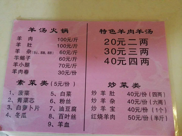 天寧區(qū)紅梅奧彩小吃店(紅梅羊湯店)成立十四年,特色是羊湯, 羊肉是中國(guó)人民食用的主要肉類之一.羊肉比其他肉類的肉質(zhì)要細(xì)嫩,而且膽固醇含星低。相對(duì)其他肉類而言,羊肉蛋白質(zhì)含量較多,脂肪含量較少。維生素B1、B2、B6以及鐵、鋅、硒的含量頗為豐富。此外,羊肉肉質(zhì)細(xì)嫩容易消化吸收.多吃羊肉有助于提高身體免疫力。 羊肉熱量比牛肉要高.中醫(yī)認(rèn)為,羊肉具有補(bǔ)精血,益虛勞.溫中健脾,補(bǔ)腎壯陽(yáng),養(yǎng)薛等功能,尤其適合老年人、體虛的人群食用。 羊肉的大部分脂肪都可看得見(jiàn),很容易去除。羊腿部肉、肋骨和腰部肉比肩胛肉瘦。每100克烤羊腿中.含蛋白質(zhì)28克、脂肪7克、膽固醇100毫克.能提供的熱量是757.7千焦。 羊羔肉富含蛋白質(zhì)、鋅和維生素B族,其中煙酸、維生素B2和維生素B12的含量壟基圭富.羊羔肉中鎂、鉀和磷的含量也較高,并易于吸收。