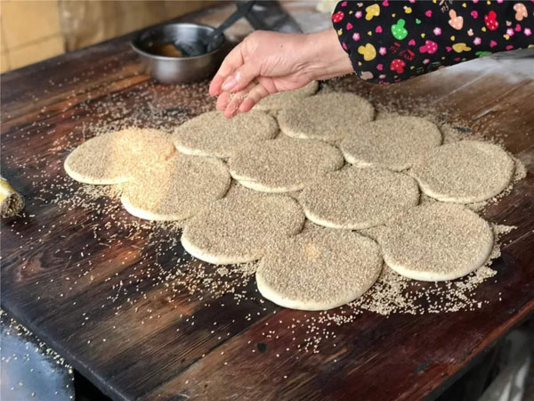 常州大麻糕已經有150多年的歷史,常武各地的麻糕師傅、麻糕店數不勝數,但今天小編要帶大家去的是一家隱藏在背街小巷里,至今仍保持著傳統(tǒng)手工制法的麻糕店。 沈正昌麻糕店位于遙觀鎮(zhèn)東街、國寧寺旁,雖然店門口連個招牌都沒有,卻不妨礙四面八方的食客慕名而來,大伙看中的正是這些純手工制作,原汁原味的大麻糕。如今的店主沈國平已經是沈家第四代做麻糕的傳人了。 秉承著爺爺那輩傳下來的手藝,他們制作的麻糕塊大實誠,用料講究,口感酥軟,深受四周鄉(xiāng)鄰的歡迎!拔覀冞是老法,酥是生板油身擦的,餡里也是生板油摻糖,是真的綠色產品,沒有添加劑,沒有防腐劑,也不用甜蜜素,都是真家伙! 每天凌晨一兩點鐘,沈國平就要去采買當天最新鮮的豬板油,回來清理干凈,和上面粉攪拌均勻,制成面團。麻糕的制作主要由沈國平妻子和兩個姊妹來完成。揉面、搓胚子、配油酥,按餡心、搟均勻,整個過程行云流水,連貫無比。 當爐火燒得正旺,溫度能高達近300度,沈國平就上場了,赤手空拳,一撈一貼,一秒鐘的功夫,就把麻糕貼到了桶壁上。不過幾分鐘的功夫,麻糕就出爐了。經過炭火爐子烤出來的,比一些電烤爐烤出的更香、更脆。