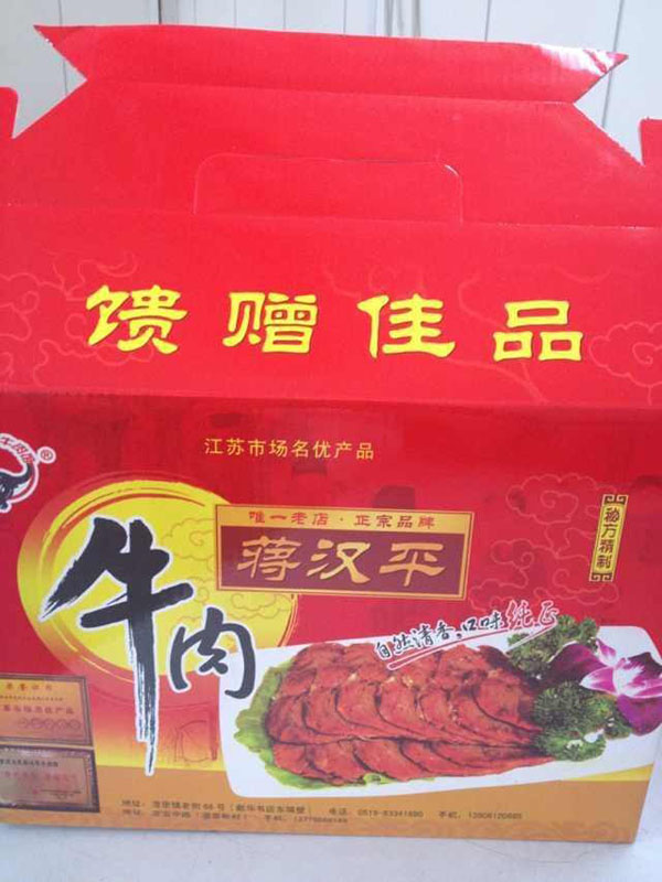 湟里漢平牛肉館創(chuàng)建于二十世紀初,當時湟里鎮(zhèn)乃蘇、浙、皖三省交界的商貿(mào)重鎮(zhèn),而湟里“牛市”交易更是聞名遐邇,始祖利用當?shù)貎?yōu)質(zhì)的水牛資源,配以特制秘方精制而成,其肉質(zhì)細膩,筋肉相同,鮮香美味,百吃不厭,當時廣受各路商界贊譽。蔣氏牛肉聲名遠揚。經(jīng)過祖先秘方與現(xiàn)代工藝的不斷完善,使得現(xiàn)在的蔣漢平牛肉館在常武地區(qū)享有盛名,成為唯一的正宗湟里牛肉,各界星級大酒店已把蔣氏的“湟里牛肉”搬上菜譜,成為一道必吃的佳肴,同時也是人們饋贈親友的首選佳品。