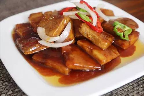 特色香芋 你可別誤會,這可不是豆腐干,看似樸素的外表下卻大有來頭。張總說,有次在廣西嘗到了有名的荔浦芋頭,非常好吃,便想著這美味應(yīng)該讓家鄉(xiāng)的父老也能嘗到;貋砗,他走訪常州各大市場,終于在凌家塘找到一家荔浦芋頭供應(yīng)商,保證了正宗新鮮的貨源。貨源有了,菜怎么做呢?常州人喜香、喜咸甜,在和廚師不斷地嘗試下,外皮酥脆、內(nèi)軟香糯、松而不粘的特色香芋誕生了。張總自豪地說道,咱們這香芋加了一味蜂蜜,咸甜適口,不僅好吃還健康養(yǎng)生。新老顧客,逢來必點。