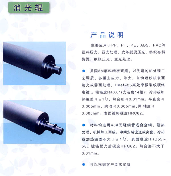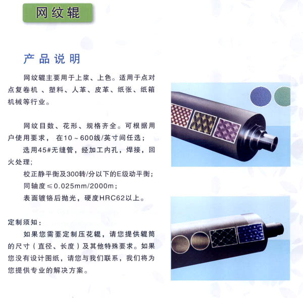 常州市武進(jìn)區(qū)禮嘉鎮(zhèn)萬超機(jī)械有限公司專業(yè)生產(chǎn)、加工花輥、鏡面輥、無紡布設(shè)備,及各類機(jī)械配件。產(chǎn)品廣泛應(yīng)用于金屬、塑料、皮革、紙張、玻璃、木材、無紡布、衛(wèi)生材料、包裝裝潢等行業(yè)。 公司經(jīng)營(yíng)方針:服務(wù)鍥而不舍 品質(zhì)力臻卓越。得到國(guó)內(nèi)眾多客戶的厚愛與好評(píng)。 歡迎各界朋友蒞臨常州萬超機(jī)械有限公司指導(dǎo)和業(yè)務(wù)洽談。 萬超為顧客免費(fèi)打樣、并代客壓紋!