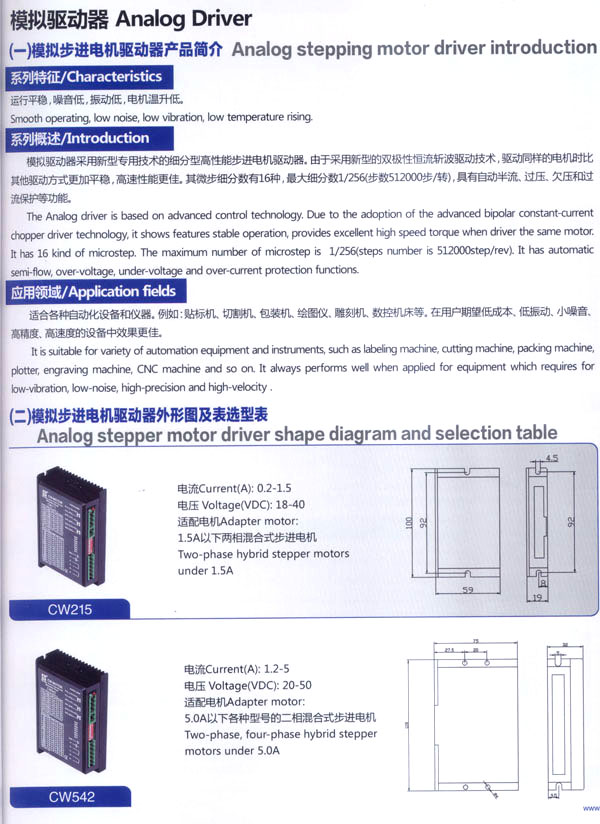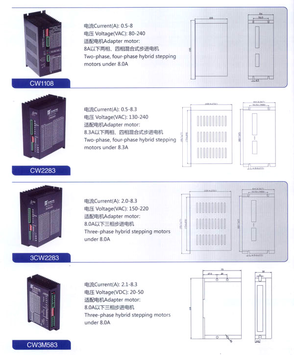 常州創(chuàng)偉電機(jī)電器有限公司成立于1995年,是一家專業(yè)從事步進(jìn)電機(jī)及驅(qū)動(dòng)控制生產(chǎn)、研發(fā)的企業(yè),F(xiàn)已擁有一批富有經(jīng)驗(yàn)的生產(chǎn)和開發(fā)隊(duì)伍。企業(yè)在多年的發(fā)展過程中,為全國各地各行業(yè)提供了大量質(zhì)優(yōu)價(jià)廉的步進(jìn)電機(jī)及控制產(chǎn)品。應(yīng)用領(lǐng)域涉及機(jī)器人、音樂噴泉、數(shù)控機(jī)床設(shè)備、工業(yè)電子自動(dòng)化設(shè)備、醫(yī)療器械、廣告器材、舞臺(tái)燈光設(shè)備、印刷設(shè)備、紡織機(jī)械、計(jì)算機(jī)外部應(yīng)用設(shè)備等等。 公司產(chǎn)品先后通過ISO9001質(zhì)量管理體系認(rèn)證,RoHS認(rèn)證,CE認(rèn)證。公司現(xiàn)擁有全自動(dòng)繞線機(jī)、調(diào)壓式充磁機(jī)、萬能外圓磨床、數(shù)控機(jī)床等設(shè)備50余臺(tái),固定資產(chǎn)3000萬元,員工總數(shù)200余人,其中技術(shù)人員25人。年生產(chǎn)各類電機(jī)100萬臺(tái)。依靠齊全的檢測設(shè)備、完善的檢測手段、嚴(yán)格的質(zhì)量標(biāo)準(zhǔn),我們一直致力于提高產(chǎn)品的質(zhì)量和性能。對(duì)于每一個(gè)客戶我們都提供自始自終的技術(shù)服務(wù)和產(chǎn)品售后服務(wù)。 我公司的主要產(chǎn)品有20BH系列、28BH系列、35BH系列、39BH系列、42BH系列、42BHH系列、57BH圓形系列、57BHH方形系列、60BHH方形系列、86BH圓形系列、86BHH方形系列,以及110BHH系列的四相(二相)混合式步進(jìn)電。CW60BL、CW63BL、CW70BL、CW92BL系列無刷電機(jī)也相繼上市。另外步進(jìn)電機(jī)驅(qū)動(dòng)器CW215、CW230、CW5045、CW8060、CW6060AC、CW1108以及全新數(shù)字式驅(qū)動(dòng)器CWD230、CWD556、CWD860H、CW2M2208、CW3M2208和閉環(huán)電機(jī)驅(qū)動(dòng)器CWDS556,CWDS660,CWDS860H,CWDS880L,CWDS1108,CWDS2206等系列也暢銷全球。另外本公司也可對(duì)外承接各種步進(jìn)電機(jī)及相關(guān)工控系統(tǒng)的應(yīng)用系統(tǒng)工程。 熱忱歡迎國內(nèi)外客商前來洽談及合作。