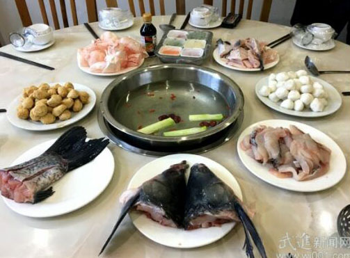 洛陽(yáng)戴溪青魚(yú)火鍋店,眾所周知,火鍋屬于川菜,以麻、辣、鮮、香著稱(chēng),是四川的美食代表。如今,火鍋店遍地開(kāi)花。作為本土自創(chuàng)品牌老字號(hào)火鍋店,洛陽(yáng)戴溪青魚(yú)火鍋店20年來(lái)屹立不倒,自然有它獨(dú)到的地方。 青魚(yú)火鍋獨(dú)此一家,青魚(yú)火鍋,顧名思義,最主要的食材當(dāng)然就是青魚(yú)。走進(jìn)洛陽(yáng)戴溪青魚(yú)火鍋店,就會(huì)被大堂內(nèi)的兩塊大匾所吸引,上面詳細(xì)介紹了戴溪青魚(yú)!俺V菔忻飘a(chǎn)品”、“武進(jìn)農(nóng)家特色菜”,可見(jiàn)戴溪青魚(yú)的知名度。 洛陽(yáng)鎮(zhèn)戴溪地區(qū)養(yǎng)殖青魚(yú)歷史悠久。從20世紀(jì)50年代開(kāi)始,當(dāng)?shù)鼐拖破鹆损B(yǎng)殖青魚(yú)的熱潮,并逐步形成了獨(dú)具特色的青魚(yú)產(chǎn)業(yè)。青魚(yú)是四大家魚(yú)之首,肉質(zhì)細(xì)嫩且鮮美,蛋白質(zhì)含量超過(guò)雞肉,是淡水魚(yú)中的上品。 近水樓臺(tái)先得月,今年57歲的陳煥祥是土生土長(zhǎng)的戴溪人,10年前,他將自己已經(jīng)開(kāi)了10年的重慶火鍋店轉(zhuǎn)型升級(jí),“既然凡是能吃的食物都可以在火鍋中燙食,何不把特產(chǎn) 戴溪青魚(yú)作為火鍋食材呢’”據(jù)了解.這也是常武地區(qū)唯一一家青魚(yú)火鍋店。 戴溪青魚(yú)火鍋店選用的都是附近漁場(chǎng)的正宗戴溪青魚(yú).體形瘦長(zhǎng),魚(yú)身烏黑.重量在12斤左右。在火鍋店的原料間,記者見(jiàn)到了一口巨大的魚(yú)池,里面養(yǎng)的部是活蹦亂跳的戴溪青魚(yú)。“來(lái)我們店里消費(fèi)的,大都是;中著青魚(yú)火鍋來(lái)的.平均一天就要?dú)? 2條青魚(yú)。”陳煥祥告訴記者。 戴溪青魚(yú)全身都是好食材,在食材的挑選上.戴溪青魚(yú)火鍋店絕對(duì)不馬虎。戴溪青魚(yú)全身都是好食材.在這里.魚(yú)尾、魚(yú)頭、魚(yú)塊、魚(yú)片、魚(yú)丸、魚(yú)鰾.關(guān)于青魚(yú)的每一道菜品都透著新鮮。光是魚(yú)丸就分兩種,一種是白煮,一種是油炸,其中,炸魚(yú)丸是食客必點(diǎn)菜。將魚(yú)肉、雞蛋混合,充分?jǐn)嚢,揉捏直至融為一體.再放入油鍋中。魚(yú)丸表皮逐漸被油炸成金黃,慢慢浮上油面.待熱油滴;爭(zhēng)便是美味上桌之時(shí)。 “青魚(yú)尾巴鰱魚(yú)頭”的美食俗話,提醒人們青魚(yú)最美味的是尾段。青魚(yú)火鍋?zhàn)匀簧俨涣饲圄~(yú)尾巴.將魚(yú)尾細(xì)劃幾刀.放入滾熱的火鍋中煮食。青魚(yú)體量大,在河中游動(dòng)覓食時(shí).尾巴用力尤甚,所以魚(yú)尾部分豐腴黏軟勝似魚(yú)翅。 說(shuō)到涮魚(yú)片.不像普通火鍋店里切得薄如蟬翼的魚(yú)片.這里的每片青魚(yú)片都有三四毫米厚。陳煥祥告訴記者.這樣才能吃出魚(yú)肉的彈性和韌性,保持魚(yú)的原生態(tài)。 魚(yú)鰾也是這里的一大美食.但一條魚(yú)只有一個(gè)魚(yú)鰾,只能限量供應(yīng)。要吃魚(yú)鰾,還得看運(yùn)氣。吃過(guò)的食客表示,魚(yú)鰾很筋道,有嚼勁又有黏性,口感很好。 二十年如一日?qǐng)?jiān)守品質(zhì)吃火鍋.講究食材的本味.只用一鍋清湯便能吃出戴溪青魚(yú)最正宗的味道。戴溪青魚(yú)火鍋的菜品不僅限于青魚(yú),其他菜肴也講究新鮮,突出本味。除了戴溪青魚(yú),這里還有野生甲魚(yú)、野生董鱔、河蝦等各種新鮮火鍋食材。美味,源自陳煥祥二十年如一日對(duì)于品質(zhì)的堅(jiān)守。他每天早上5點(diǎn)半起床,6點(diǎn)半買(mǎi)菜,每道菜品的質(zhì)量都由他驗(yàn)視過(guò)關(guān)后才能上桌,他還花重金請(qǐng)專(zhuān)業(yè)人士研制了青魚(yú)火鍋專(zhuān)用醬油。 陳煥祥的兒子陳俊杰大學(xué)學(xué)的是酒店管理,畢業(yè)后就職于湖塘一家酒店,從普通服務(wù)員一直做到銷(xiāo)售經(jīng)理,幾年前回來(lái)幫父親打理火鍋店。兒子的加人,讓美味傳承有了新起點(diǎn)。