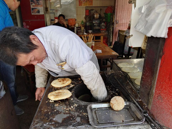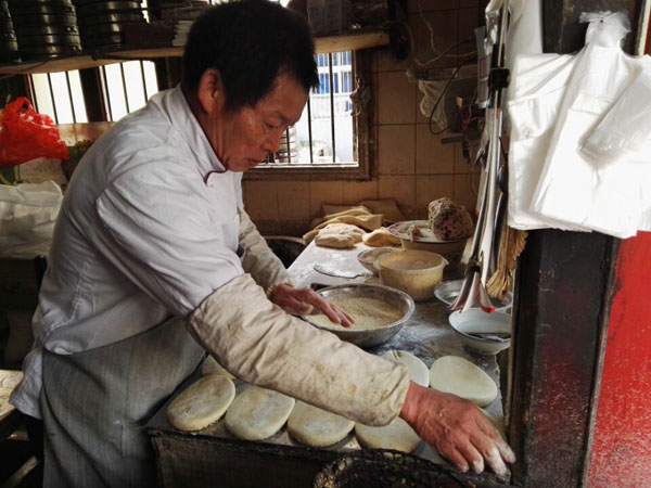 常州人夏亞寶的大麻糕技術是上世紀80年代更著新橋麻糕店的師傅周金生學的,1999年開店至今,在附近一帶做得小有名氣,向學校供應麻糕,整整6年。 “做大麻糕太辛苦,半夜爬起來準備熱爐子、和面、做餡,年輕人吃不了這苦,15年我都沒請人,和老婆一起打過來的!毕膩唽氈钢直凵系臓C傷的痕跡說,能堅持烤桶制作大麻糕的真心不多了。夏亞寶的烤桶是自制的,爐心常州買不到,他托人從無錫買來,15年前85元一個,前年漲到150元!翱就暗臓t心其實就是以前船上人家用的行爐”,去底后鑿個洞,然后外面加上隔熱材料,最后貼上鐵片”。 15年,這已經(jīng)是第三只貼桶了。