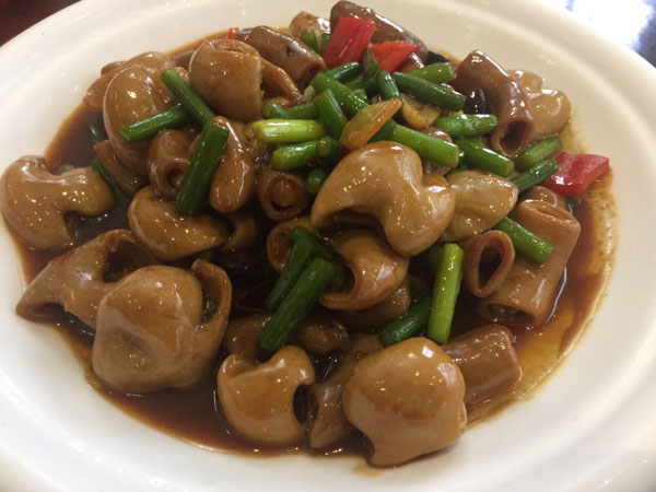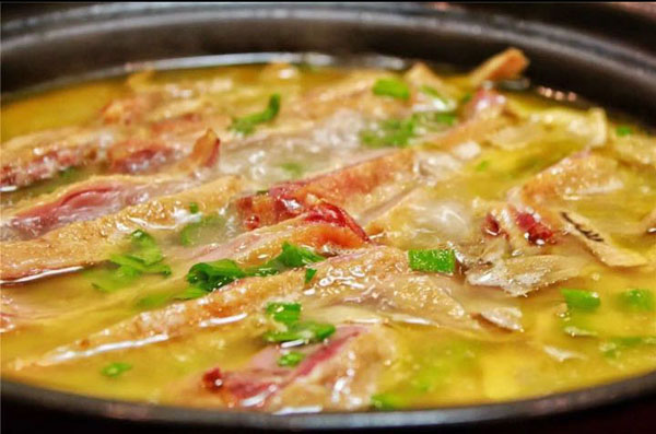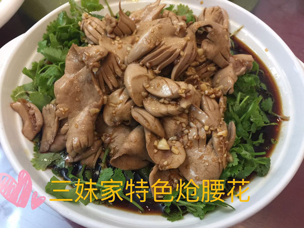 橫林有個地兒叫楊歧村,有句老話叫“上不靠橫林,下不靠洛社”,說的就是那里。 楊歧村過去幾十米就是無錫地界,今天小編推薦的土菜館「三妹農(nóng)家小吃」就在那里。 當(dāng)小編一路七拐八拐,中午11點半到達那里時,門面雖然很簡陋,但店門口已然停了好多輛車。剛進入店門,就發(fā)現(xiàn)這家店人氣好旺,十幾桌基本都坐滿了。(所以說,人不可貌相,餐館也是如此) "三妹,三妹。⒌昀锟腿私袉韭暡唤^于耳,原來老板娘叫楊三妹啊。你們忙,我們先隨便看看。 過大廳到后堂就是冷菜間,里面有白切草雞、鹵豬干、拌馬蘭等十幾種土菜,尤其那草雞濃郁的香味,讓小編肚子叫得咕咕響。 往前是活貨區(qū),各種鮮魚活蝦一格一格區(qū)分養(yǎng)著,再里面是開放式廚房,每個客人都可以看到,選用的放心食材和調(diào)料。  吃貨老板娘,楊三妹,三妹,從小到大一直有個嗜好,就是愛美味,不光喜歡吃,還喜歡鉆研做。2010年,「三妹小吃」開張,因為獨具特色,在楊歧這個小村一炮而紅。要說楊三妹最拿手的菜是什么,當(dāng)然是酒糟扣肉。 糟本來就是一種做米酒留下來后,用來吊燒酒的。但是我們常州人很聰明,把糟和肉放在一起,做成一道美味菜,叫酒糟扣肉。 楊三妹的酒糟扣肉之所以有名,得益于母親的悉心傳授。記憶里小辰光,她母親做的扣肉總比別人家的香。「糟」,釀完酒后留下的糟,會與炒熟的新糯米,拌和在一起,陳一年!溉狻,選擇本地養(yǎng)殖的良種豬,沒有臊味。 長大后,她把記憶里的美味延續(xù)了下來。精益求精的她,對扣肉的制作過程要求很嚴格。別人家制作都是把肉直接切大塊,排碗,熬槽,蒸爛。三妹說,這樣烹制,肉汁的鮮美會流失很多,口感減分不少。她的做法是精選新鮮豬五花,整大塊清蒸,保留肉汁的鮮美,之后再切塊紅燒,排碗,熬糟,澆蓋,再蒸。 三妹酒糟扣肉,出鍋后,色澤紅潤,味道鮮美。既有酒的香味,又有肉的鮮美,而且經(jīng)過蒸煮后,油脂都出來了,爽口不油膩。