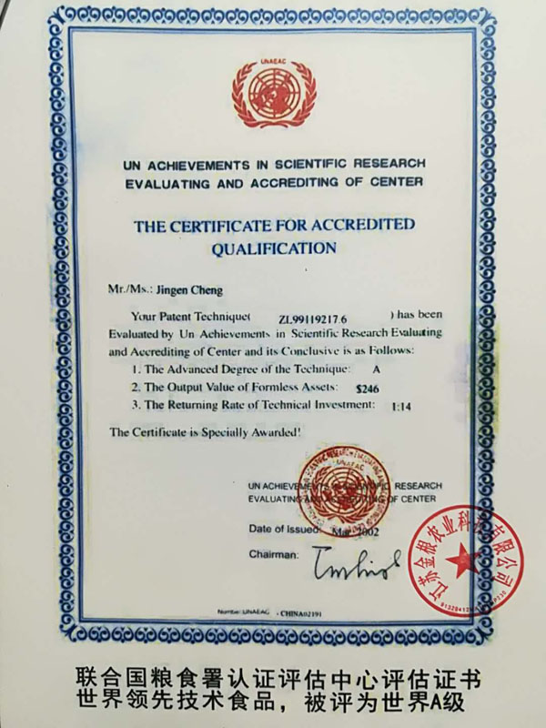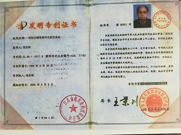 江蘇金根農業(yè)科技有限公司是專業(yè)從事無糖食品、糖尿病、肥胖、和中老年人健康食品的研究、開發(fā)、銷售為一體的現(xiàn)代企業(yè)。 經高級工程師程金根先生盡二十八年研發(fā),以五谷四豆為原料研制出一種特殊的營養(yǎng)食品。本產品富含人體所需的有機微量元素:鉻、硒、鋅、鎂、鋰等,幾十種氨基酸、膳食纖維及其它營養(yǎng)物質。產品原料是按生態(tài)農業(yè)有機的標準通過生物工程的種、培植方法,為谷糧增加了多種營養(yǎng)成份,按科學配方生產出“老山仁”系列產品。 本產品原料是在高寒、高濕、旱地等種植,要求施農家肥,采用生物治蟲,因此是無公害的優(yōu)良品種。目前公司有四個種植基地,分別在江西、江蘇、陜西等地。 一種防治糖尿病功能性食品專利號:ZL99119217.6。 “程金根”系列產品先后獲得二項發(fā)明專利,并經聯(lián)合國科技成果評估論證為A級產品,屬世界領先技術。在韓國、美國、香港、德國分別榮獲新技術、新產品博覽會金獎。 2006年經國家農業(yè)部、發(fā)展改革委員會、聯(lián)合國糧農組織代表、中醫(yī)研究院、中國科學技術協(xié)會、中醫(yī)藥大學、農業(yè)大學、農學院、中國保健協(xié)會、糧油協(xié)會、食品研究所等十幾位專家對該專利產品做了評估論證,一致認為該項技術先進產品突出、食用安全,并給予很高的評價。 論證意見: 1、這項專利技術填補了國內糖尿病特種功效食品的專用品種和栽培技術空白。 2、采用有機食品技術,并以有機農產品為原料加工特種營養(yǎng)食品,提高了產品的安全性。 3、用鉻、硒、鋅、鎂、鋰生物強化栽培技術已獲得發(fā)明專利,為國際先進水平。 4、經過10多年的應用實踐,進一步證明了通過飲食調理,可預防糖尿病,對已患糖尿病者有緩解和預防糖尿病綜合癥的功效。 “程金根”系列產品具有低脂肪、低熱量、高蛋白、富含各種微量元素(鉻、硒、鋅、鎂、鋰)、高膳食纖維、具有抗氧化、增加免疫力等特點,經常食用有利于膳食營養(yǎng)平衡,是糖尿病、肥胖和中老年人、亞健康群體最佳的健康食品。