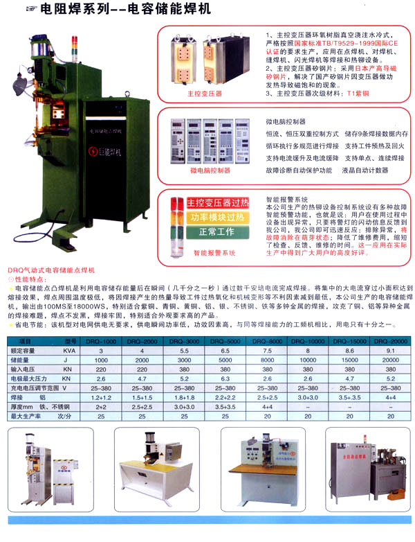 中國(guó)★常州市巨能自動(dòng)化設(shè)備制造有限公司是專業(yè)生產(chǎn)各種焊割設(shè)備和紡織后整理設(shè)備及液壓設(shè)備的企業(yè),致力自動(dòng)化設(shè)備的工藝研究和生產(chǎn)制造已二十余年,擁有專業(yè)的科技研發(fā)團(tuán)隊(duì)和成套精密的機(jī)械加工設(shè)備,從每一個(gè)零配件加工到整體設(shè)備組裝調(diào)試,都有專業(yè)的技術(shù)人員和質(zhì)量保證體系。 焊割主要產(chǎn)品有:點(diǎn)焊機(jī)系列、縫焊機(jī)系列、環(huán)縫焊接機(jī)床、凸焊機(jī)、排焊機(jī)、儲(chǔ)能焊機(jī)、對(duì)焊機(jī)、龍門焊機(jī)、太陽(yáng)能焊接設(shè)備和機(jī)器人焊接系統(tǒng)及外圍設(shè)備等;并為用戶設(shè)計(jì)制造專用焊接設(shè)備。 紡織后整理設(shè)備主要有:剪毛機(jī)、刷花機(jī)、滴塑機(jī)等;并為用戶設(shè)計(jì)制造專用紡織后整理設(shè)備。 液壓設(shè)備主要有:油壓機(jī)、平板硫化機(jī)等;并為用戶設(shè)計(jì)制造專用液壓設(shè)備。 本公司集咨詢、開發(fā)、研制、生產(chǎn)、銷售、服務(wù)于一體。多年來(lái),產(chǎn)品質(zhì)量,售后服務(wù)得到廣大用戶好評(píng)。 客戶的要求是企業(yè)的奮斗目標(biāo),竭誠(chéng)為用戶做好售前、售后服務(wù)是我們的服務(wù)宗旨!
