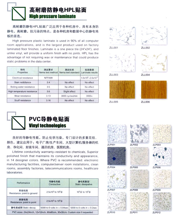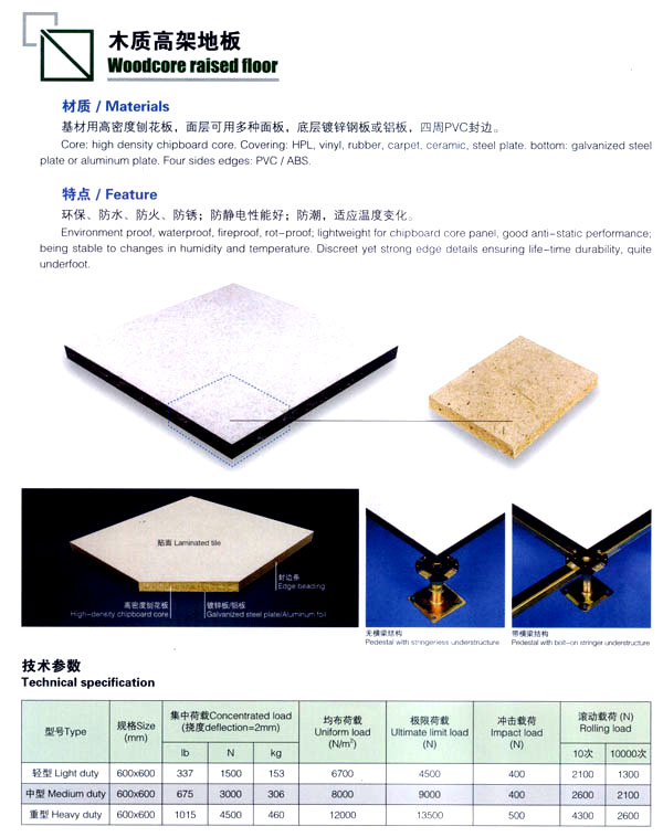 公司生產(chǎn)防靜電鋼質(zhì)、木質(zhì)機房地板和強化復合地板及各種電腦操作臺系列產(chǎn)品。該產(chǎn)品廣泛應用于電子機房、通訊機房、各類實驗室和管線鋪設集中的防靜電場所以及家庭、大型商場的裝飾。公司技術力量雄厚、管理科學,已具有設計、開發(fā)、市場營銷及售后服務的專業(yè)人才隊伍。