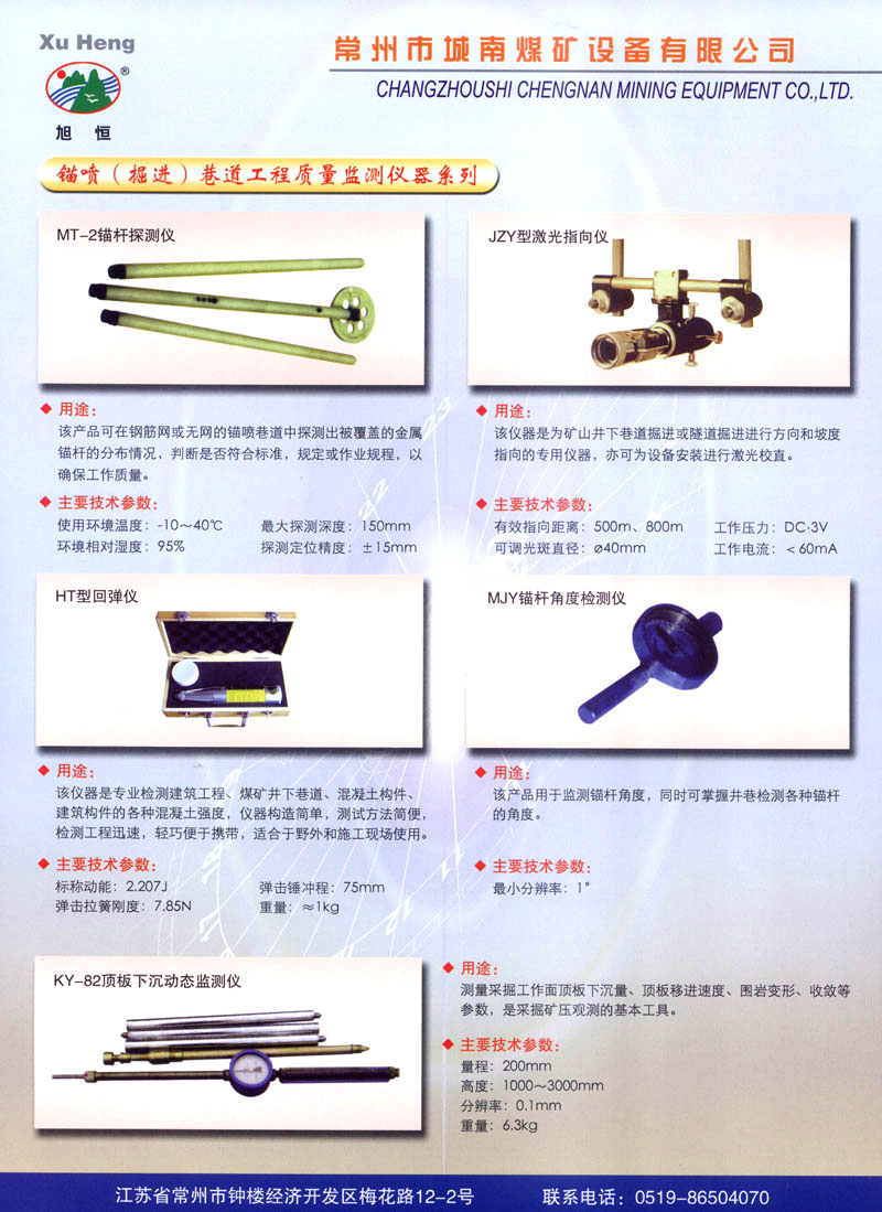 本公司是專業(yè)生產煤礦產品,是全國最早開發(fā)煤礦礦壓、頂板管理、單體支護質量監(jiān)測等一系列產品的生產企業(yè).常年和煤炭科研單位共同研制和開發(fā)煤礦需求的新型產品.特別在近幾年來,隨著中國社會的不斷進步,煤炭的現(xiàn)代化開采,我公司推出一系列高質量、高科技的產品;機電設備方面,針對綜采、單體維修、拆裝以及支架、頂梁的成型和整形,都有了相應的設備產品.在錨噴巷道工程質量檢測,頂板管理等方面.全面達到系列化,產品暢銷全國二十多個省市和自治區(qū)的各大、小煤礦,產品深受全國用戶的青睞和好評,周到的服務和公司嚴格的管理,使我公司贏來了較好的榮譽和經濟效益。
