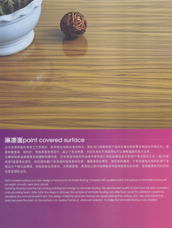 常州漢豐裝飾材料有限公司是一家涉及強(qiáng)化地板制造、屏風(fēng)鋁材生產(chǎn)、進(jìn)出口貿(mào)易的大型公司。2001年公司投入重資.全面引進(jìn)世界頂級(jí)一體化自動(dòng)流水生產(chǎn)線和具有國(guó)際先進(jìn)水準(zhǔn)的德國(guó)權(quán)威木地板生產(chǎn)技術(shù),興建強(qiáng)化地板生產(chǎn)基地。多年以來(lái).一直不斷加強(qiáng)生產(chǎn)設(shè)備、廠房基礎(chǔ)投入,目前公司年生產(chǎn)強(qiáng)化地板能力已經(jīng)達(dá)到了500萬(wàn)平方米,步入國(guó)內(nèi)一流行列,具備了雄厚的國(guó)際競(jìng)爭(zhēng)力。 漢豐地板以奉獻(xiàn)生活中最完美的地板為發(fā)展目標(biāo),時(shí)尚流行的設(shè)計(jì)風(fēng)格和多樣化的產(chǎn)品類型,贏得了市場(chǎng)的廣泛贊譽(yù)和肯定。產(chǎn)品嚴(yán)格按照歐洲標(biāo)準(zhǔn)檢測(cè)強(qiáng)化木地板的各項(xiàng)性能指標(biāo).達(dá)到百分百的國(guó)際技術(shù)標(biāo)準(zhǔn),確保了每一塊地板都有著上乘品質(zhì),是綠色環(huán)保的好地板。并先后通過(guò)了Isc)9001國(guó)際質(zhì)量管理體系認(rèn)證,IS014001國(guó)際環(huán)境管理體系認(rèn)證.中國(guó)環(huán)境標(biāo)志產(chǎn)品認(rèn)證,深得用戶的一致好評(píng),是寫字樓、商場(chǎng)、大型超市、學(xué)校、建筑樓宇、娛樂(lè)場(chǎng)所、家用私宅等鋪裝的首選地板。