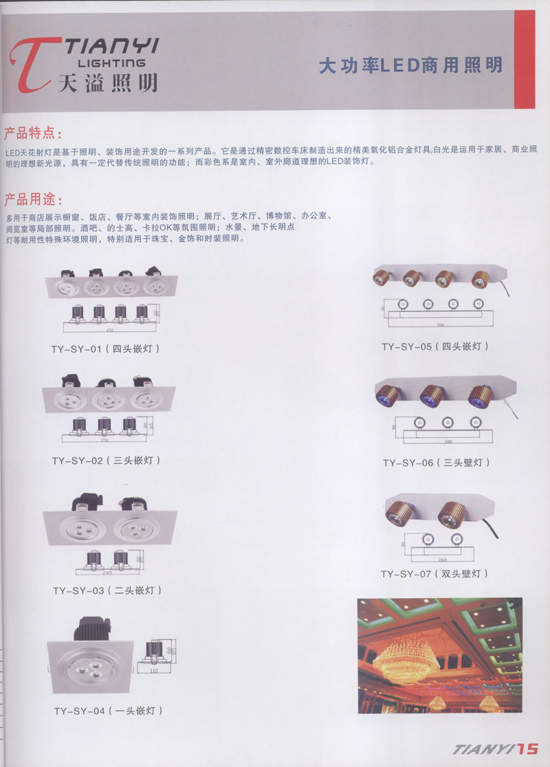 天溢照明是中國領(lǐng)先的專業(yè)從事LED廣告照明裝飾燈具設(shè)計(jì)、系統(tǒng)開發(fā)、燈具制造、工程服務(wù)一體的專業(yè)型公司,本公司產(chǎn)品已廣泛應(yīng)用于全國大多數(shù)城市夜景亮化景觀照明、酒店休閑娛樂夜場(chǎng)夢(mèng)幻燈光、戶內(nèi)外廣告宣傳、建筑及室內(nèi)照明以及家居裝飾等場(chǎng)合。 本公司產(chǎn)品涵蓋景觀裝飾照明、商用照明、居家照明、信息廣告顯示等領(lǐng)域,我們將性能可靠與適中價(jià)格的LED全系列產(chǎn)品帶到世界各個(gè)、角落。