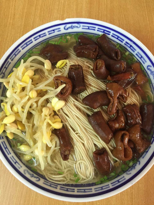 遙觀娟娟面館:青菜香菇雞蛋面 2016年歲末年初,武進區(qū)商務局、武進烹飪協(xié)會、《武進日報》等單位,在全區(qū)范圍內開展“武進招牌面”評選活動,最終,遙觀娟娟面館被評定為“武進招牌面”第一名。 2008年,馬玉娟所在的企業(yè)面臨倒閉,她開始謀求自己的創(chuàng)業(yè)之路。第一個想法就是開一家面館,因為妹妹馬小娟喜歡燒菜,親戚朋友吃了她燒的菜,無不嘖嘖稱贊。姐妹倆一合作,店名自然叫“娟娟面館”。 開面館,一面裝修,一面領“衛(wèi)生許可證”、“工商營業(yè)執(zhí)照”;再就是外出求藝學燒菜。姐妹倆兵分兩路:玉娟去學小炒,小娟去學大葷澆頭,不久便開張營業(yè)了。 行家吃面先品湯。娟娟面館的白湯是最樸實的燒法,它用大肉、排骨熬制4個小時,湯色清亮,香氣撲鼻。至于拌面湯,全部都是紅燒肉汁,加上香蔥、雞精等十多種調料,自然是色香味俱佳。 娟娟面館點單率最高的是青菜香菇雞蛋面,一菜一菇一蛋一湯,樸實無華,價廉物美,老少皆宜,久吃不厭,非常適宜我國人口的營養(yǎng)膳食結構。其中小青菜是當?shù)剞r家的家常菜;雞蛋是當?shù)毓麍@散養(yǎng)的母雞所生,味道自然地道純正了。 娟娟面館自開張以來,幾乎天天顧客盈門,高峰時要在門外等候。如今姐姐的兒子和妹妹的女兒都已上陣傳承,并在湖塘鎮(zhèn)馬杭紡織城附近新開了一家連鎖面館,每天要賣出300-500碗各式面點。