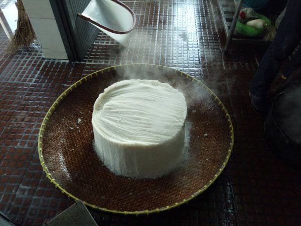 第二步:冷卻降溫,糯米蒸熟后,用冷水淋沐,直至糯米飯溫度降到35℃左右。要知道這個溫度非常關(guān)鍵,太冷了會影響之后酒曲發(fā)酵,溫度太高會把酒曲中的酵母殺死。不靠溫度計,老徐靠得完全是自己多年的經(jīng)驗。