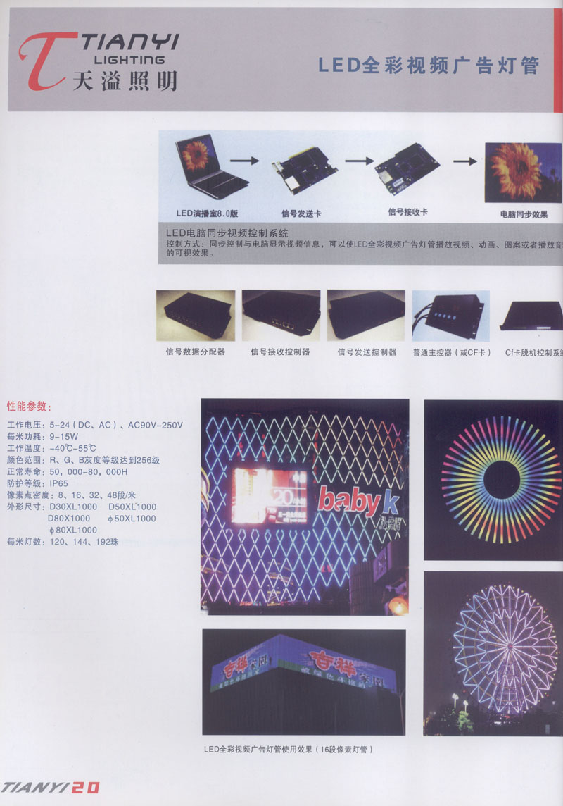 天溢照明是中國(guó)領(lǐng)先的專業(yè)從事LED廣告照明裝飾燈具設(shè)計(jì)、系統(tǒng)開發(fā)、燈具制造、工程服務(wù)一體的專業(yè)型公司,本公司產(chǎn)品已廣泛應(yīng)用于全國(guó)大多數(shù)城市夜景亮化景觀照明、酒店休閑娛樂夜場(chǎng)夢(mèng)幻燈光、戶內(nèi)外廣告宣傳、建筑及室內(nèi)照明以及家居裝飾等場(chǎng)合。 本公司產(chǎn)品涵蓋景觀裝飾照明、商用照明、居家照明、信息廣告顯示等領(lǐng)域,我們將性能可靠與適中價(jià)格的LED全系列產(chǎn)品帶到世界各個(gè)、角落。