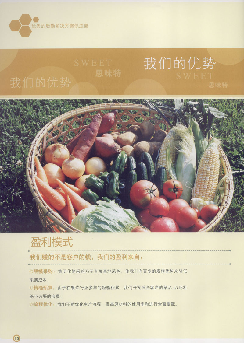 常州市思味特餐飲有限公司是一家專業(yè)從事企事業(yè)后勤服務(wù)的有限責任公司,公司從承包食堂起步,逐漸發(fā)展為經(jīng)營團膳承包、營養(yǎng)送餐、生活區(qū)管理、連鎖餐廳的綜合型企業(yè)。2008年公司斥資100萬元,在常州興建了可以同時提供3000餐膳食的中央廚房,重點打造“和美客”后勤服務(wù)品牌,全力為企事業(yè)單位解決后勤后顧之憂。 到目前為止,我們合作成功的企事業(yè)單位超過50多家,服務(wù)人數(shù)突破15萬,合作單位包括國家機關(guān)、國有企業(yè)、三資企業(yè)、民營企業(yè)、學校、醫(yī)院等,其中不乏國際知名品牌公司。 和美客愿為更多的國內(nèi)外企事業(yè)單位及機關(guān)團體分憂解難,從廚房設(shè)計、菜品配送、團膳承包、到生活區(qū)管理等提供全方位的服務(wù)。