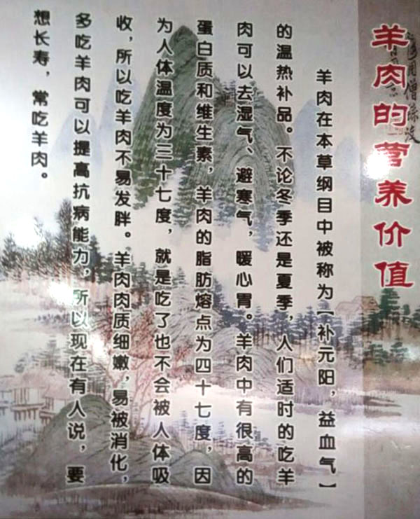 羊肉性溫?zé)帷⒀a(bǔ)氣滋陽(yáng)、暖中補(bǔ)氣、開(kāi)胃健脾、還可以去濕氣避寒冷,暖胃寒、養(yǎng)吃百草、養(yǎng)根據(jù)自身生理需要選擇草木、固羊有“百藥之庫(kù)”之稱。古人云:多吃羊肉、健康長(zhǎng)壽。