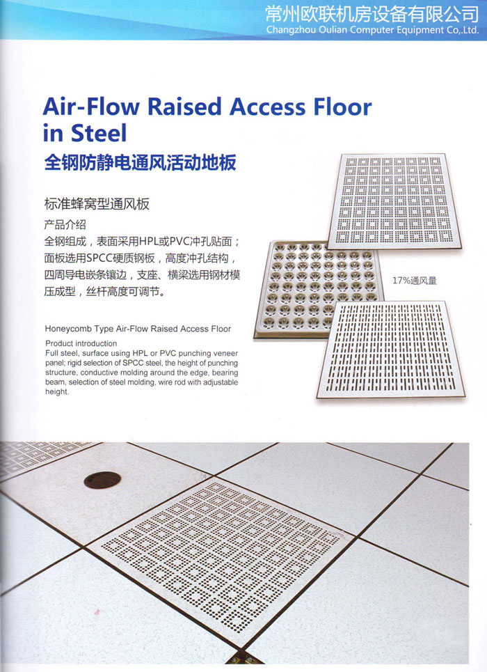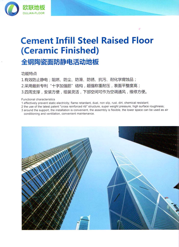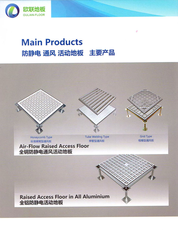 “歐聯(lián)”系列全鋼地板,符合國家安全要求,種類完備多樣,其中防靜電陶瓷地板、硫酸鈣地板等除具有普通瓷質(zhì)的裝飾和實(shí)用性外,其耐磨、防水、防火功能優(yōu)于其它同類產(chǎn)品,防靜電系列地板,能切合不同客戶的要求,其靈活的配置,深受客戶歡迎,不同材質(zhì)的地板結(jié)構(gòu)使設(shè)計(jì)師的設(shè)計(jì)空間比傳統(tǒng)的更加廣闊自由和善變。