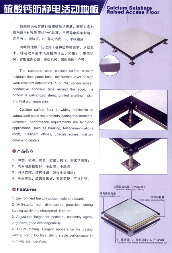 本公司生產產品廣泛應用于電子計算機房、通訊機房、電視發(fā)射臺、軍事指揮站、各類實驗室、辦公室及一些管線鋪設比較集中與要求防靜電場所,市場網絡縱橫江蘇、山東、福建、甘肅、上海、北京、安徽、浙江、河南等地。