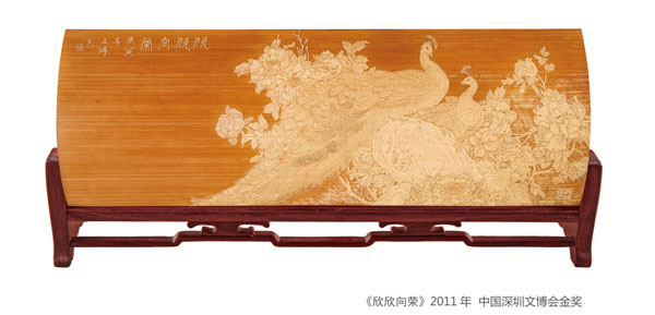 得獎情況 1、扇形擺件《花鳥》2004年9月太湖博覽會金獎 2、《蘭亭序》2008年11月江蘇藝博杯工藝美術(shù)精品獎銀獎 3、《雄風(fēng)圖》2008年11月江蘇藝博杯工藝美術(shù)精品獎創(chuàng)意獎 4、《靜音》2008年11月“天工藝苑•百花杯”中國工藝美術(shù)精品獎銀獎 5、《人物》2008年12月中國收藏藝術(shù)精品博覽會金獎 6、《花鳥》200 8年12月中國收藏藝術(shù)精品博覽會銀獎 7、《青竹鳥語》2008年12月中國收藏藝術(shù)品博覽會“入圍收藏品” 8、《吉祥富貴》2009年3月“金鳳凰”創(chuàng)新產(chǎn)品設(shè)計(jì)大獎賽金獎 9、《黃山云!2009年10月江蘇藝博杯工藝美術(shù)精品獎金獎 10、《花鳥》2009年10月第二屆江蘇旅游商品博覽會最佳產(chǎn)品獎 11、《秋菊圖》2009年11月“天工藝苑•百花杯”中國工藝美術(shù)精品獎銀獎 12、《秋鷹圖》2010年3月“金鳳凰”創(chuàng)新產(chǎn)品設(shè)計(jì)大獎賽優(yōu)秀獎 13、《花鳥四屏》2010年3月“金鳳凰”創(chuàng)新產(chǎn)品設(shè)計(jì)大獎賽銅獎 14、《荷塘清暑》2010年5月深圳國際文化產(chǎn)業(yè)博覽交易會銅獎 15、《溪山煙云圖》2010年9月江蘇藝博杯工藝美術(shù)精品大獎賽金獎 16、《高士臨風(fēng)圖》2010年10月“天工藝苑•百花杯”中國工藝美術(shù)精品獎銀獎 17、《溪山煙云圖》2010年11月第二屆東方工藝美術(shù)之都博覽會“迎春花獎” 18、《深山尋隱圖》2011年3月“金鳳凰”產(chǎn)品設(shè)計(jì)大獎賽銅獎 19、《欣欣向榮》2011年5月深圳國際文化產(chǎn)業(yè)博覽交易會金獎 20、《江崖遠(yuǎn)眺圖》2011年9月江蘇藝博杯工藝美術(shù)精品大獎賽金獎 21、《富春山居圖》2011年10月“天工藝苑•百花杯”中國工藝美術(shù)精品獎金獎 22、《深山訪友》2011年11月中國無錫國際文化藝術(shù)博覽會銀獎 23、《幽谷清音》2012年3月“金鳳凰”創(chuàng)新產(chǎn)品設(shè)計(jì)大獎賽銅獎 24、《群芳競艷》2012年10月“儒仕儒家、百花杯”中國工藝美術(shù)精品博覽會金獎 25、《山村渡口圖》2012年12江蘇藝博杯工藝美術(shù)精品大獎賽金獎。 26、《晨妝》2013年4月“金鳳凰”創(chuàng)新產(chǎn)品設(shè)計(jì)大獎賽金獎。 27、《和風(fēng)圖》2013年6月中國(青島)工藝美術(shù)博覽會創(chuàng)新產(chǎn)品設(shè)計(jì)大賽金獎。 28、《松壑聽泉》2013年9月江蘇藝博杯工藝美術(shù)精品大獎賽銀獎。 29、《君子圖》2013年11月“國信•百花杯”中國工藝美術(shù)精品獎銀獎 30《碧水輕舟》2014年5月深圳國際文化產(chǎn)業(yè)博覽交易會銀獎。 31、《千巖萬壑圖》2014年10月“中國原創(chuàng)•百花杯”中國工藝美術(shù)精品獎金獎 32、《溪山訪友圖》2014年10月江蘇藝博杯工藝美術(shù)精品大獎賽銀獎 33、《深山云壑》2014年12月深圳冬季國際文化產(chǎn)業(yè)博覽交易會金獎 34、《鷹》2015年深圳文化產(chǎn)業(yè)博覽交易會獲“中國工藝美術(shù)文化創(chuàng)意獎”金獎
