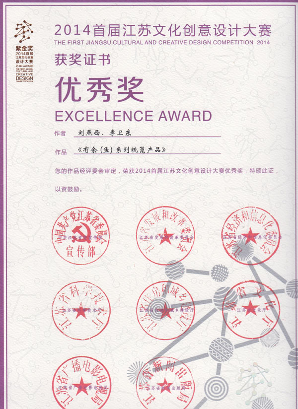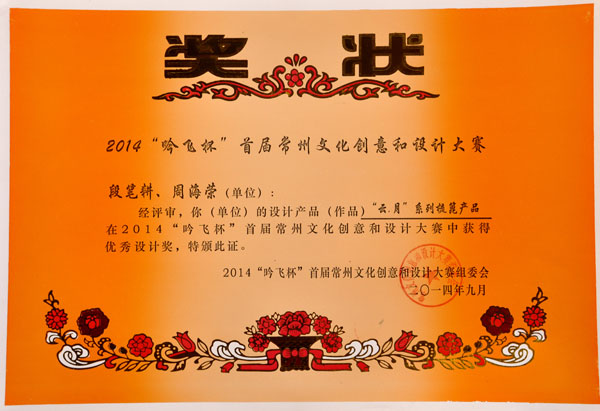 公司榮譽介紹: “2009年常州市旅游商品創(chuàng)新設計大賽”,“覽盡千荷”綠檀雕刻梳榮獲三等獎; “2011年常州市旅游商品創(chuàng)新設計大賽”,“彩印工藝梳-我們的年代(80)”榮獲二等獎。 “2011年中國包裝創(chuàng)意設計大賽“,虞美人彩印梳篦系列包裝獲得一等獎; “2011年中國包裝創(chuàng)意設計大賽”,虞美人筷子系列包裝獲得三等獎; “2011創(chuàng)意中國.第五屆設計藝術大獎賽”,虞美人系列包裝獲得三等獎; “2011首屆中國(無錫)國際文化藝術博覽會”,漆藝對梳《喜玫瑰》獲得“藝博杯“銅獎。 “第十三屆中國工藝美術大師作品暨國際藝術精品博覽會”, 漆藝梳《報喜鳥》榮獲2012“儒士儒家•百花杯”中國工藝美術精品獎優(yōu)秀獎 “第十三屆中國工藝美術大師作品暨國際藝術精品博覽會”, 虞美人《渾然天成》榮獲2012“儒士儒家•百花杯”中國工藝美術精品獎金獎 “2012江蘇省工藝美術精品大獎賽”,虞美人《S型梳》喜獲“藝博杯”銀獎 “第十四屆中國工藝美術大師作品暨國際藝術精品博覽會”, 虞美人工藝梳《新型十二星座梳》榮獲2013“國信•百花杯”中國工藝美術精品獎優(yōu)秀獎 “2013【藝博杯】江蘇省工藝美術精品大獎賽”,虞美人《萬事如意系列》喜獲“藝博杯”銀獎 “2013江蘇省工藝美術新人新作成果展作品大獎賽”,虞美人《壺(福)的藝術》喜獲“藝博杯”入圍獎 2013年度江蘇省“蘇商領袖峰會”,常州市卓尚飾品有限公司榮獲最具成長性企業(yè)獎 常州市卓尚飾品(虞美人)有限公司總經(jīng)理李衛(wèi)東榮獲“常州創(chuàng)意產(chǎn)業(yè)協(xié)會2013年底慈善獎榮譽” 常州市卓尚飾品有限公司榮獲薛家鎮(zhèn)人民政府2013年度“創(chuàng)新創(chuàng)優(yōu)”獎 常州市卓尚飾品有限公司榮獲薛家鎮(zhèn)人民政府2013年度“銷售業(yè)績”獎 2014中國(深圳)國際文化產(chǎn)業(yè)博覽交易會,劉燕西、李衛(wèi)東、段筆耕<十二星座系列>獲得“中國工藝美術文化創(chuàng)意獎”銀獎 2014中國(深圳)國際文化產(chǎn)業(yè)博覽交易會,徐德鴻、李衛(wèi)東、段筆耕《漆彩人生系列》獲得“中國工藝美術文化創(chuàng)意獎”銅獎 文化創(chuàng)意大獎賽“紫金獎” ,有余(魚)系列梳篦產(chǎn)品獲得了優(yōu)秀獎 2014吟飛杯首屆常州文化創(chuàng)意和設計大賽,虞美人有余(魚)系列梳篦產(chǎn)品榮獲優(yōu)秀設計獎 2014吟飛杯首屆常州文化創(chuàng)意和設計大賽,虞美人“云,月”系列梳篦產(chǎn)品榮獲優(yōu)秀設計獎 2014藝博杯江蘇省工藝美術精品大獎賽,虞美人《梳篦:酒醉的探戈》喜獲銀獎 2014“中國原創(chuàng)•百花杯”中國工藝美術精品大獎賽,虞美人《梳篦-江南風韻系列》喜獲銀獎 常州市卓尚飾品有限公司獲“2014年常州市電子商務協(xié)會2014年度優(yōu)秀會員單位” 2014“虞美人”成為常州市知名商標。